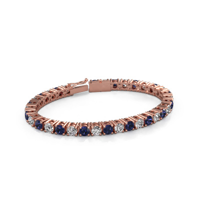 Deze betaalbare en tijdloze rosé gouden tennisarmband is prachtig te combineren met veel kledingstijlen. De tennisarmband is rondom bezet met schitterende saffier totaal 5 mm, die met veel zorg zo geplaatst zijn dat ze het licht perfect opvangen. Doordat jouw vintage tennisarmband met de hand wordt vervaardigd, is het ook mogelijk om deze tot in de kleinste details af te werken. Wist je trouwens dat de tennisarmband zo heet naar aanleiding van tennisster Chris Evert? Zij verloor tijdens de US Open in 1987 haar tennisarmband, en de wedstrijd werd stopgezet om haar kostbare tennisarmband met diamanten terug te vinden. Sindsdien wordt dit model een tennisarmband genoemd en is erg populair onder beroemdheden als Serena Williams en Katy Perry. Doordat ze prettig dragen en erg elegant zijn, blijft een tennisarmband, zoals deze Karin 5 mm tennisarmband erg populair. Het mooiste cadeau wat je kunt geven, is een zelfontworpen vintage betaalbare tennisarmband. Ons team van gepassioneerde goudsmeden voegt iedere dag de mooiste nieuwe ontwerpen toe. En elk ontwerp kun je naar jouw wens aanpassen. Zo heb je de keuze welk edelmetaal gebruikt wordt, en kun je de kleur kiezen van de edelstenen. Zo wordt jouw vintage Karin 5 mm tennisarmband ontwerp geheel uniek!Elke dag worden nieuwe tennisarmbanden ontwerpen toegevoegd aan de site door ons team van talentvolle en gepassioneerde ontwerpers. Hierbij wordt ernaar gestreefd om een zo gevarieerd mogelijke collectie aan te bieden. Heb je bepaalde ideeën voor een tennisarmband, neem dan eens contact op voor een offerte. Wij doen je een aanbod wat betreft prijs en kwaliteit waar je geen nee tegen zult kunnen zeggen.Omdat wij zelf alle tennisarmbanden maken en direct aan jou leveren, kunnen wij je een tennisarmband leveren tegen een prijs die je nergens anders zult tegenkomen. Een armband wordt pas gemaakt als we een bestelling krijgen, hierdoor hebben wij geen dure voorraden en kunnen wij jou de beste prijs garanderen. Wij begrijpen dat het kopen van een tennisarmband online spannend is, en denken graag met je mee over de mogelijkheden binnen jouw budget.Om het voor jou makkelijker te maken kun je ieder besteld sieraad binnen 30 dagen na aflevering eenvoudig weer retour sturen.
