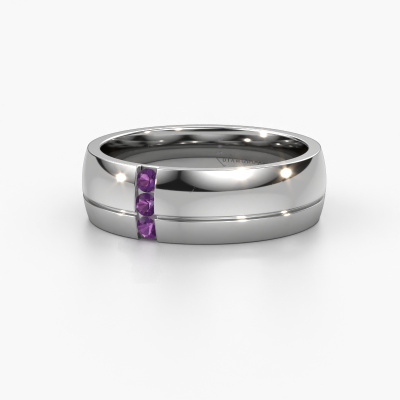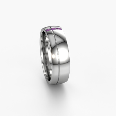 Een unieke bicolor platina dames trouwring, door jullie zelf ontworpen en ambachtelijk met de hand gemaakt door onze goudsmid in ons eigen atelier! Een prachtig symbool, dat jullie liefde weerspiegelt en je je leven lang mee mag dragen! Elke trouwring die wij leveren is in ons eigen atelier ambachtelijk met de hand gemaakt. Hierdoor is het mogelijk om al je wensen te verwezenlijken in jouw persoonlijke ring, die bij jouw stijl past. In deze moderne WH0223L56A trouwring is ronde amethist geplaatst, hij is ±6 mm breed en heeft een glimmende afwerking. In ons gespecialiseerde team verwerkt de sieradenontwerper jouw trouwring tot een 3D ontwerp. Wanneer je wilt, kun je hier ook een dummy van bestellen, zodat je de trouwring al van tevoren kunt zien en passen. Onze goudsmid werkt vervolgens in ons atelier met de hand om heel nauwkeurig jouw unieke ring te vervaardigen. Een heel secuur werkje, zowel het vervaardigen als de afwerking vragen een scherp oog. En dat is het mooie van het vak, want uiteindelijk is jouw unieke trouwring het resultaat van een echt ambacht, dat met veel passie uitgevoerd wordt!Je kunt je trouwens ook laten inspireren door deze trouwring en de ring nog verder naar smaak aanpassen. Wil je bijvoorbeeld liever een bredere of smallere ring of een glimmende of matte ring? Alles is mogelijk. Ook als je zelf een idee hebt voor prachtige trouwringen, of ergens anders een mooie set hebt gezien, die je naar eigen wens zou willen aanpassen: geen probleem! Neem gerust contact op, onze designers bespreken graag de mogelijkheden met je!Doordat wij alle trouwringen pas vervaardigen, zodra een bestelling geplaatst wordt, hebben wij geen dure voorraden. Ook worden alle sieraden in eigen atelier naar ambachtelijk vakmanschap gemaakt. Hierdoor kunnen we jou een beste prijsgarantie leveren, de prijs ligt 30% lager dan bij andere juweliers. En dat terwijl jouw trouwringen geleverd worden in de vertrouwde juwelierskwaliteit!Om het voor jou makkelijker te maken kun je ieder besteld sieraad binnen 30 dagen na aflevering eenvoudig weer retour sturen.