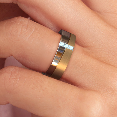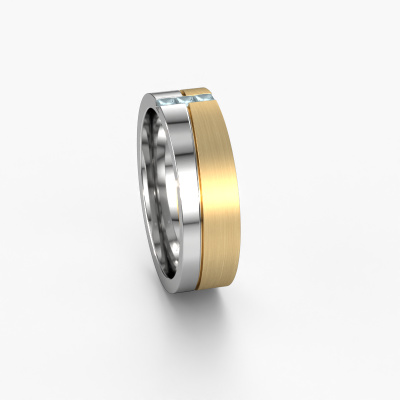 Een unieke bicolor witgouden dames trouwring, door jullie zelf ontworpen en ambachtelijk met de hand gemaakt door onze goudsmid in ons eigen atelier! Een prachtig symbool, dat jullie liefde weerspiegelt en je je leven lang mee mag dragen! Elke trouwring die wij leveren is in ons eigen atelier ambachtelijk met de hand gemaakt. Hierdoor is het mogelijk om al je wensen te verwezenlijken in jouw persoonlijke ring, die bij jouw stijl past. In deze moderne WH0906L16A trouwring is princess aquamarijn geplaatst, hij is ±6 mm breed en heeft een mat/glimmende afwerking. Je kunt in de configurator hierboven aangeven welke combinatie van edelmetalen bij jou passen, alles is mogelijk! Het is wel goed om te kijken naar de eigenschappen van de edelmetalen. Goud en zilver zijn bijvoorbeeld twee zachtere edelmetalen. Hoe puurder deze door onze goudsmid worden samengesteld, hoe hoger het aantal karaat, hoe zachter de trouwring is. Maar uiteraard hard genoeg voor het verwerken in een moderne trouwring! Wanneer je een edelmetaal zou willen, die je leven lang mee zal gaan, dan raden wij platina aan. Dit is het sterkste en meest duurzame edelmetaal waar onze goudsmid mee werkt.Heb je nog meer wensen voor je trouwring? Bijvoorbeeld een smallere of breder ring? Of juist een glimmende of matte ring? Er zijn nog talloze variaties mogelijk. Deze kun je altijd bespreken met onze sieradenontwerpers. Ook als je zelf een bepaald design in je hoofd hebt, helpen onze designers je graag verder om jouw trouwringen uit te tekenen totdat deze helemaal naar jouw smaak is samengesteld. Neem gerust contact met ons op!Doordat wij alle trouwringen pas vervaardigen, zodra een bestelling geplaatst wordt, hebben wij geen dure voorraden. Ook worden alle sieraden in eigen atelier naar ambachtelijk vakmanschap gemaakt. Hierdoor kunnen we jou een beste prijsgarantie leveren, de prijs ligt 30% lager dan bij andere juweliers. En dat terwijl jouw trouwringen geleverd worden in de vertrouwde juwelierskwaliteit!Om het voor jou makkelijker te maken kun je ieder besteld sieraad binnen 30 dagen na aflevering eenvoudig weer retour sturen.