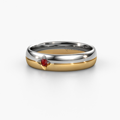 Wat een prachtige combinatie van twee edelmetalen, die elkaar zo mooi versterken in de eigentijdse vormgeving van deze ring! Onze goudsmid vindt het bijzonder om voor jou een unieke trouwring te vervaardigen, die jij zelf hebt samengesteld. Elke dames trouwring die wij leveren is in ons eigen atelier ambachtelijk met de hand gemaakt. Hierdoor is het mogelijk om al je wensen te verwezenlijken in jouw persoonlijke ring, die bij jouw stijl past. In deze eigentijdse WH0221L35X trouwring is ronde robijn geplaatst, hij is ±5 mm breed en heeft een glimmende afwerking. U kunt deze dames trouwring zelf samenstellen in verschillende edelmetaal combinaties, deze heeft de combinatie 14 Carat goud met witgoud. Goud is hét symbool van de liefde, en daarom verwerkt onze goudsmid dit graag in een eigentijdse trouwring voor jou. Wij zijn aangesloten bij de Responsible Jewellery Council. Dit betekent dat wij werken met eerlijk gewonnen goud, iets waar we uiteraard trots op zijn. Het is trouwens ook mogelijk om je eigen goud te laten verwerken in jouw trouwring. Doordat alle sieraden door onze goudsmid met de hand in ons atelier wordt gemaakt, kunnen wij jou deze optie aanbieden. Hierdoor heb jij de gelegenheid om jouw ring nog persoonlijker te maken, een ring met een verhaal!Deze trouwring kan ook als inspiratiebron dienen. Wil jij de ring mat of glimmend (kosteloos), of zou je hem breder of smaller willen? Alles is mogelijk. Omdat er talloze variaties mogelijk zijn kunnen wij niet alles tonen op onze website. Heb je zelf een idee voor mooie trouwringen of heb je ergens anders een mooie trouwringen set gezien? Neem dan eens contact met ons op, onze designers staan voor je klaar om je hierbij te helpen.Door de modernste technieken, gecombineerd met ambachtelijk handwerk, kunnen wij je trouwringen leveren voor een prijs die altijd 30% goedkoper is. Ook doordat we alle trouwringen zelf gaan maken, zodra een bestelling komt, hebben we geen dure voorraden en kunnen we daardoor jou de beste prijsgarantie geven, voor juwelierskwaliteit!Om het voor jou makkelijker te maken kun je ieder besteld sieraad binnen 30 dagen na aflevering eenvoudig weer retour sturen.