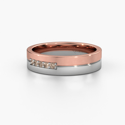 Wat een prachtige combinatie van twee edelmetalen, die elkaar zo mooi versterken in de moderne vormgeving van deze ring! Onze goudsmid vindt het bijzonder om voor jou een unieke trouwring te vervaardigen, die jij zelf hebt samengesteld. Elke dames trouwring die wij leveren is in ons eigen atelier ambachtelijk met de hand gemaakt. Hierdoor is het mogelijk om al je wensen te verwezenlijken in jouw persoonlijke ring, die bij jouw stijl past. In deze moderne WH0211L15AP trouwring is ronde bruine diamant geplaatst, hij is ±5 mm breed en heeft een glimmende afwerking. U kunt deze dames trouwring zelf samenstellen in verschillende edelmetaal combinaties, deze heeft de combinatie 14 Carat rosé goud met witgoud. Een trouwring uitzoeken is niet iets dat je even snel wilt doen. Uiteindelijk willen jullie die ring dragen, die precies bij jullie stijl en wensen past. En die ook jullie liefde en relatie met elkaar weerspiegelt. Een ring, die bedoeld is om een leven lang te dragen, en symbool staat voor alles wat jullie verbindt. Daarom vinden wij het zo mooi, dat we precies de ring die jullie in gedachten hebben, kunnen vervaardigen. Dit gaat allemaal ambachtelijk met de hand in ons eigen atelier, zodat we ieder detail heel precies kunnen verwerken. Een mooier vak bestaat niet!Heb je nog meer wensen voor je trouwring? Bijvoorbeeld een smallere of breder ring? Of juist een glimmende of matte ring? Er zijn nog talloze variaties mogelijk. Deze kun je altijd bespreken met onze sieradenontwerpers. Ook als je zelf een bepaald design in je hoofd hebt, helpen onze designers je graag verder om jouw trouwringen uit te tekenen totdat deze helemaal naar jouw smaak is samengesteld. Neem gerust contact met ons op!Trouwringen worden pas vervaardigd als deze besteld worden. Het grote voordeel hiervan is dat wij geen dure voorraden hebben, en dat zie je terug in de prijs. Ook worden alle trouwringen in ons eigen atelier gemaakt door onze eigen goudsmeden, en kunnen we je hierdoor een beste prijsgarantie geven, voor een ring in vertrouwde juwelierskwaliteit.Om het voor jou makkelijker te maken kun je ieder besteld sieraad binnen 30 dagen na aflevering eenvoudig weer retour sturen.