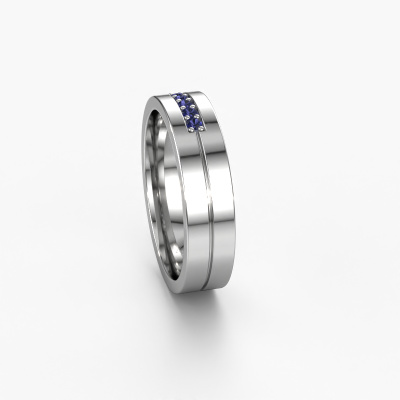 Wat een prachtige combinatie van twee edelmetalen, die elkaar zo mooi versterken in de moderne vormgeving van deze ring! Onze goudsmid vindt het bijzonder om voor jou een unieke trouwring te vervaardigen, die jij zelf hebt samengesteld. Elke dames trouwring die wij leveren is in ons eigen atelier ambachtelijk met de hand gemaakt. Hierdoor is het mogelijk om al je wensen te verwezenlijken in jouw persoonlijke ring, die bij jouw stijl past. In deze moderne WH0211L15AP trouwring is ronde saffier geplaatst, hij is ±5 mm breed en heeft een glimmende afwerking. U kunt deze dames trouwring zelf samenstellen in verschillende edelmetaal combinaties, deze heeft de combinatie 14 Carat witgoud met witgoud. Een trouwring uitzoeken is niet iets dat je even snel wilt doen. Uiteindelijk willen jullie die ring dragen, die precies bij jullie stijl en wensen past. En die ook jullie liefde en relatie met elkaar weerspiegelt. Een ring, die bedoeld is om een leven lang te dragen, en symbool staat voor alles wat jullie verbindt. Daarom vinden wij het zo mooi, dat we precies de ring die jullie in gedachten hebben, kunnen vervaardigen. Dit gaat allemaal ambachtelijk met de hand in ons eigen atelier, zodat we ieder detail heel precies kunnen verwerken. Een mooier vak bestaat niet!Heb je nog meer wensen voor je trouwring? Bijvoorbeeld een smallere of breder ring? Of juist een glimmende of matte ring? Er zijn nog talloze variaties mogelijk. Deze kun je altijd bespreken met onze sieradenontwerpers. Ook als je zelf een bepaald design in je hoofd hebt, helpen onze designers je graag verder om jouw trouwringen uit te tekenen totdat deze helemaal naar jouw smaak is samengesteld. Neem gerust contact met ons op!Trouwringen worden pas vervaardigd als deze besteld worden. Het grote voordeel hiervan is dat wij geen dure voorraden hebben, en dat zie je terug in de prijs. Ook worden alle trouwringen in ons eigen atelier gemaakt door onze eigen goudsmeden, en kunnen we je hierdoor een beste prijsgarantie geven, voor een ring in vertrouwde juwelierskwaliteit.Om het voor jou makkelijker te maken kun je ieder besteld sieraad binnen 30 dagen na aflevering eenvoudig weer retour sturen.