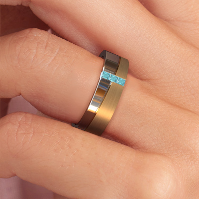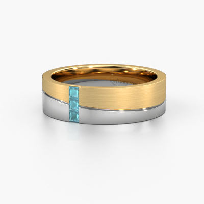 Een unieke bicolor witgouden dames trouwring, door jullie zelf ontworpen en ambachtelijk met de hand gemaakt door onze goudsmid in ons eigen atelier! Een prachtig symbool, dat jullie liefde weerspiegelt en je je leven lang mee mag dragen! Elke trouwring die wij leveren is in ons eigen atelier ambachtelijk met de hand gemaakt. Hierdoor is het mogelijk om al je wensen te verwezenlijken in jouw persoonlijke ring, die bij jouw stijl past. In deze moderne WH0906L16A trouwring is princess blauw topaas geplaatst, hij is ±6 mm breed en heeft een mat/glimmende afwerking. Je kunt in de configurator hierboven aangeven welke combinatie van edelmetalen bij jou passen, alles is mogelijk! Het is wel goed om te kijken naar de eigenschappen van de edelmetalen. Goud en zilver zijn bijvoorbeeld twee zachtere edelmetalen. Hoe puurder deze door onze goudsmid worden samengesteld, hoe hoger het aantal karaat, hoe zachter de trouwring is. Maar uiteraard hard genoeg voor het verwerken in een moderne trouwring! Wanneer je een edelmetaal zou willen, die je leven lang mee zal gaan, dan raden wij platina aan. Dit is het sterkste en meest duurzame edelmetaal waar onze goudsmid mee werkt.Heb je nog meer wensen voor je trouwring? Bijvoorbeeld een smallere of breder ring? Of juist een glimmende of matte ring? Er zijn nog talloze variaties mogelijk. Deze kun je altijd bespreken met onze sieradenontwerpers. Ook als je zelf een bepaald design in je hoofd hebt, helpen onze designers je graag verder om jouw trouwringen uit te tekenen totdat deze helemaal naar jouw smaak is samengesteld. Neem gerust contact met ons op!Doordat wij alle trouwringen pas vervaardigen, zodra een bestelling geplaatst wordt, hebben wij geen dure voorraden. Ook worden alle sieraden in eigen atelier naar ambachtelijk vakmanschap gemaakt. Hierdoor kunnen we jou een beste prijsgarantie leveren, de prijs ligt 30% lager dan bij andere juweliers. En dat terwijl jouw trouwringen geleverd worden in de vertrouwde juwelierskwaliteit!Om het voor jou makkelijker te maken kun je ieder besteld sieraad binnen 30 dagen na aflevering eenvoudig weer retour sturen.