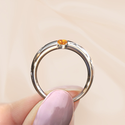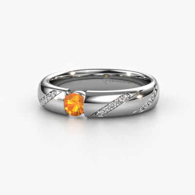 In deze exclusieve trouwring voor dames smelten ambachtelijk vakmanschap, liefde en passie samen met de modernste technieken. Het vraagt een geoefend oog, geduld en een vaardige hand om deze platina trouwring tot in de kleinste details perfect samen te stellen. Maar daar gaan onze goudsmeden dan ook absoluut voor! Op deze manier creëer je een exclusieve ring, tot in de details aangepast naar jullie wensen. En handgemaakt in ons eigen atelier. In deze exclusieve WH2102L34A trouwring is citrien 4 mm geplaatst, hij is ±5 mm breed en heeft een glimmende afwerking.