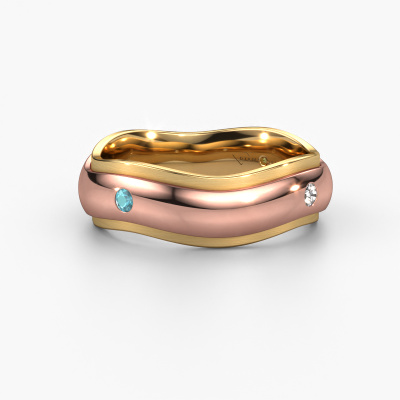 Wat een prachtige combinatie van twee edelmetalen, die elkaar zo mooi versterken in de unieke vormgeving van deze ring! Onze goudsmid vindt het bijzonder om voor jou een unieke trouwring te vervaardigen, die jij zelf hebt samengesteld. Elke dames trouwring die wij leveren is in ons eigen atelier ambachtelijk met de hand gemaakt. Hierdoor is het mogelijk om al je wensen te verwezenlijken in jouw persoonlijke ring, die bij jouw stijl past. In deze unieke WH2050L26DP trouwring is ronde blauw topaas geplaatst, hij is ±6 mm breed en heeft een glimmende afwerking. U kunt deze dames trouwring zelf samenstellen in verschillende edelmetaal combinaties, deze heeft de combinatie 14 Carat rosé goud met goud. Nadat jij jouw ring hebt samengesteld, gaat onze sieradenontwerper hiermee aan de slag. Hij maakt een 3D tekening van jouw trouwring. Deze kunnen we ook gebruiken om een dummy te maken van je ring. Je hebt namelijk de mogelijkheid een dummy te bestellen, zodat je al van tevoren kunt zien hoe jouw ring uiteindelijk wordt. Vervolgens vervaardigt onze vakkundige goudsmid jouw ring in ons atelier. Wij maken gebruik van eerlijk gewonnen goud, zodat jij een ring krijgt waar we zowel op de binnenkant als buitenkant trots op zijn. Overigens kun je ook eigen goud aanleveren. Omdat wij jouw ring met de hand maken, kunnen we je eigen goud hierin gebruiken. Ons doel is om een prachtige glanzende trouwring te creëren, zoals jij deze in gedachte had!Heb je nog meer wensen voor je trouwring en kun je deze hier niet terug vinden? Neem gerust contact op met onze designers! Zo kunnen we een ring juist mat maken, breder of smaller. Ook gravures zijn in de meeste gevallen mogelijk. En heb je een eigen idee voor mooie trouwringen? Onze sieradenontwerpers vinden het een prachtige uitdaging om jouw ring helemaal naar jouw voorstelling te ontwerpen!Doordat wij alle trouwringen pas vervaardigen, zodra een bestelling geplaatst wordt, hebben wij geen dure voorraden. Ook worden alle sieraden in eigen atelier naar ambachtelijk vakmanschap gemaakt. Hierdoor kunnen we jou een beste prijsgarantie leveren, de prijs ligt 30% lager dan bij andere juweliers. En dat terwijl jouw trouwringen geleverd worden in de vertrouwde juwelierskwaliteit!Om het voor jou makkelijker te maken kun je ieder besteld sieraad binnen 30 dagen na aflevering eenvoudig weer retour sturen.