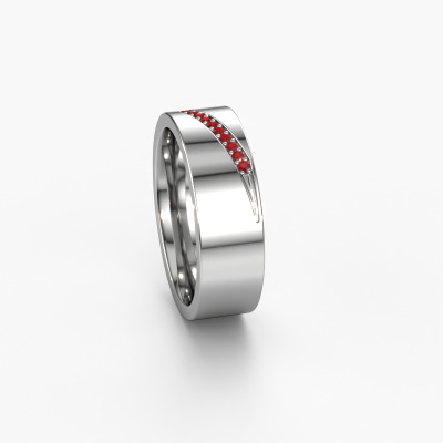 Een echte stijlvolle 14 Carat moderne trouwring! Deze prachtige trouwring voor dames is gezet met ronde robijn. Doordat onze goudsmeden de witgouden trouwring met de hand vervaardigen in ons eigen atelier, worden de robijn met uiterste precisie geplaatst, waardoor de lichtinval op de robijn optimaal is. De breedte van deze moderne WH2146L17A trouwring is ±7 mm en hij is glimmende afgewerkt. In ons gespecialiseerde team verwerkt de sieradenontwerper jouw trouwring tot een 3D ontwerp. Wanneer je wilt, kun je hier ook een dummy van bestellen, zodat je de trouwring al van tevoren kunt zien en passen. Onze goudsmid werkt vervolgens in ons atelier met de hand om heel nauwkeurig jouw unieke ring te vervaardigen. Een heel secuur werkje, zowel het vervaardigen als de afwerking vragen een scherp oog. En dat is het mooie van het vak, want uiteindelijk is jouw unieke trouwring het resultaat van een echt ambacht, dat met veel passie uitgevoerd wordt!Heb je nog specifieke wensen? Bijvoorbeeld een glimmende of juiste matte ring (kostenloos)? Breder of smaller? De mogelijkheden voor deze trouwring groot, neem gerust contact met onze designers op om jouw ring nog verder naar jouw voorkeuren aan te passen. Ook als je ideeën hebt voor een ontwerp van je eigen trouwringen of een bepaalde ring in de winkel hebt gezien, kun je deze altijd bespreken met onze sieradenontwerpers. Zij vinden het een mooie uitdaging om precies die ring te ontwerpen die jij in gedachten hebt!Omdat wij zelf alle trouwringen maken en direct aan jou leveren kunnen wij je trouwringen leveren tegen een prijs die je nergens anders zult tegenkomen. Een ring wordt pas gemaakt als we een bestelling krijgen, hierdoor hebben wij geen dure voorraden en kunnen wij jou de beste prijs garanderen.Om het voor jou makkelijker te maken kun je ieder besteld sieraad binnen 30 dagen na aflevering eenvoudig weer retour sturen.