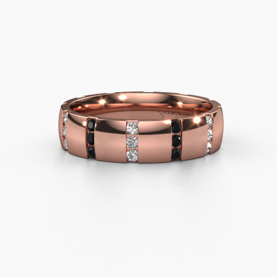 Wanneer je echt op zoek bent naar een rosé gouden exclusieve, design huwelijksring met een prachtige uitstraling, dan is deze huwelijksring een absoluut mooie keuze. Juist doordat deze naar jouw stijl aangepast kan worden, kun je van deze huwelijksring een unieke, exclusieve huwelijksring maken. In deze design huwelijksring voor dames smelten ambachtelijk vakmanschap, liefde en passie samen met de modernste technieken. In deze design Juul huwelijksring is zwarte diamant 0.594 crt geplaatst, hij is ±5 mm breed en heeft een glimmende afwerking. Nadat jij jouw ring hebt samengesteld, gaat onze sieradenontwerper hiermee aan de slag. Hij maakt een 3D tekening van jouw huwelijksring. Deze kunnen we ook gebruiken om een dummy te maken van je ring. Je hebt namelijk de mogelijkheid een dummy te bestellen, zodat je al van tevoren kunt zien hoe jouw ring uiteindelijk wordt. Vervolgens vervaardigt onze vakkundige goudsmid jouw ring in ons atelier. Wij maken gebruik van eerlijk gewonnen goud, zodat jij een ring krijgt waar we zowel op de binnenkant als buitenkant trots op zijn. Overigens kun je ook eigen goud aanleveren. Omdat wij jouw ring met de hand maken, kunnen we je eigen goud hierin gebruiken. Ons doel is om een prachtige glanzende huwelijksring te creëren, zoals jij deze in gedachte had!Heb je nog meer wensen voor je huwelijksring? Bijvoorbeeld een smallere of breder ring? Of juist een glimmende of matte ring? Er zijn nog talloze variaties mogelijk. Deze kun je altijd bespreken met onze sieradenontwerpers. Ook als je zelf een bepaald design in je hoofd hebt, helpen onze designers je graag verder om jouw huwelijksringen uit te tekenen totdat deze helemaal naar jouw smaak is samengesteld. Neem gerust contact met ons op!Omdat wij zelf alle huwelijksringen maken en direct aan u leveren kunnen wij u huwelijksringen leveren tegen een prijs die u nergens anders zult tegenkomen. Een ring wordt pas gemaakt als we een bestelling krijgen, hierdoor hebben wij geen dure voorraden en kunnen wij u de beste prijs garanderen.Om het voor jou makkelijker te maken kun je ieder besteld sieraad binnen 30 dagen na aflevering eenvoudig weer retour sturen.