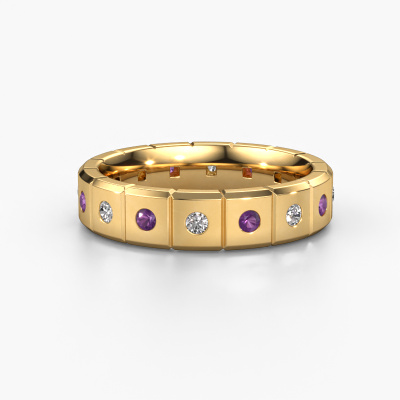 Wanneer je echt op zoek bent naar een gouden exclusieve, exclusieve huwelijksring met een prachtige uitstraling, dan is deze huwelijksring een absoluut mooie keuze. Juist doordat deze naar jouw stijl aangepast kan worden, kun je van deze huwelijksring een unieke, exclusieve huwelijksring maken. In deze exclusieve huwelijksring voor dames smelten ambachtelijk vakmanschap, liefde en passie samen met de modernste technieken. In deze exclusieve WH2055L15DP huwelijksring is amethist 2 mm geplaatst, hij is ±5 mm breed en heeft een glimmende afwerking. Goud is hét symbool van de liefde, en daarom verwerkt onze goudsmid dit graag in een exclusieve huwelijksring voor jou. Wij zijn aangesloten bij de Responsible Jewellery Council. Dit betekent dat wij werken met eerlijk gewonnen goud, iets waar we uiteraard trots op zijn. Het is trouwens ook mogelijk om je eigen goud te laten verwerken in jouw huwelijksring. Doordat alle sieraden door onze goudsmid met de hand in ons atelier wordt gemaakt, kunnen wij jou deze optie aanbieden. Hierdoor heb jij de gelegenheid om jouw ring nog persoonlijker te maken, een ring met een verhaal!Heb je nog meer wensen voor je huwelijksring? Bijvoorbeeld een smallere of breder ring? Of juist een glimmende of matte ring? Er zijn nog talloze variaties mogelijk. Deze kun je altijd bespreken met onze sieradenontwerpers. Ook als je zelf een bepaald design in je hoofd hebt, helpen onze designers je graag verder om jouw huwelijksringen uit te tekenen totdat deze helemaal naar jouw smaak is samengesteld. Neem gerust contact met ons op!Huwelijksringen worden pas vervaardigd als deze besteld worden. Het grote voordeel hiervan is dat wij geen dure voorraden hebben, en dat zie je terug in de prijs. Ook worden alle huwelijksringen in ons eigen atelier gemaakt door onze eigen goudsmeden, en kunnen we je hierdoor een beste prijsgarantie geven, voor een ring in vertrouwde juwelierskwaliteit.Om het voor jou makkelijker te maken kun je ieder besteld sieraad binnen 30 dagen na aflevering eenvoudig weer retour sturen.