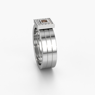 Een royale trouwring! Uniek, net als jullie relatie uniek is! Iedereen is anders en daarom wil je ook geen standaard trouwring. Deze fantasie WH2104L dames trouwring is door onze juwelen ontwerpers ontworpen en wordt door onze goudsmid met de hand vervaardigd. Daarbij worden het oude, pure ambacht gecombineerd met de modernste technieken om het mooiste resultaat te creëren. Want onze goudsmid gaat voor perfectie in alle facetten. Een unieke, handgemaakte trouwring, gemaakt om jullie liefde te bezegelen op de grote dag! In deze fantasie WH2104L trouwring van platina is rookkwarts geplaatst, hij is ±6 mm breed en heeft een glimmende afwerking. Nadat jij jouw ring hebt samengesteld, gaat onze sieradenontwerper hiermee aan de slag. Hij maakt een 3D tekening van jouw trouwring. Deze kunnen we ook gebruiken om een dummy te maken van je ring. Je hebt namelijk de mogelijkheid een dummy te bestellen, zodat je al van tevoren kunt zien hoe jouw ring uiteindelijk wordt. Vervolgens vervaardigt onze vakkundige goudsmid jouw ring in ons atelier. Wij maken gebruik van eerlijk gewonnen goud, zodat jij een ring krijgt waar we zowel op de binnenkant als buitenkant trots op zijn. Overigens kun je ook eigen goud aanleveren. Omdat wij jouw ring met de hand maken, kunnen we je eigen goud hierin gebruiken. Ons doel is om een prachtige glanzende trouwring te creëren, zoals jij deze in gedachte had!Heb je nog meer wensen voor je trouwring? Bijvoorbeeld een smallere of breder ring? Of juist een glimmende of matte ring? Er zijn nog talloze variaties mogelijk. Deze kun je altijd bespreken met onze sieradenontwerpers. Ook als je zelf een bepaald design in je hoofd hebt, helpen onze designers je graag verder om jouw trouwringen uit te tekenen totdat deze helemaal naar jouw smaak is samengesteld. Neem gerust contact met ons op!Door de modernste technieken, gecombineerd met ambachtelijk handwerk, kunnen wij je trouwringen leveren voor een prijs die altijd 30% goedkoper is. Ook doordat we alle trouwringen zelf gaan maken, zodra een bestelling komt, hebben we geen dure voorraden en kunnen we daardoor jou de beste prijsgarantie geven, voor juwelierskwaliteit!Om het voor jou makkelijker te maken kun je ieder besteld sieraad binnen 30 dagen na aflevering eenvoudig weer retour sturen.