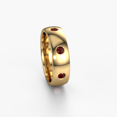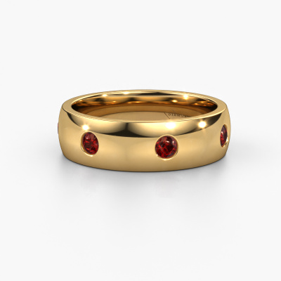 In ons atelier maken we gebruik van de meest innovatieve technieken, gecombineerd met het pure ambacht van goudsmeden, om jouw dames trouwring te vervaardigen. Dit resulteert in deze moderne WH0105L26BP trouwring, die tot in de kleinste details perfect wordt afgewerkt met de hand door onze goudsmeden. En daar zijn we trots op! Deze gouden WH0105L26BP trouwring met vlak-bol profiel voor dames is ±6 mm breed en is glimmende afgewerkt met granaat. Nadat je je trouwring besteld hebt, gaat onze goudsmid direct met jouw trouwring aan de slag. Wist je dat wij de nieuwste technieken gecombineerd hebben met het oude ambacht? Zo ontwerpen wij eerst jouw sieraad in 3D. Hier kun je, indien gewenst, een dummy van ontvangen, zodat je al kunt kijken of deze helemaal naar jouw wens is. Vervolgens vervaardigt onze perfectionistische goudsmid jouw trouwring in ons atelier, geheel met de hand. Onze passie ligt daarin, dat we iedere keer opnieuw een unieke trouwring kunnen creëren, met de beste afwerking. Zodat jij uiteindelijk die trouwring ontvangt, die helemaal naar jouw wensen vervaardigd is.Laat je gerust inspireren door onze modellen. Je kunt deze trouwring ook nog verder aanpassen: breder of smaller, glimmend of juist mat? Geen probleem! Ook als je zelf ideeën hebt voor bijzondere trouwringen, staan onze sieradenontwerpers graag voor je klaar om je droomring verder uit te werken. Neem gerust met ons contact op!Trouwringen worden pas vervaardigd als deze besteld worden. Het grote voordeel hiervan is dat wij geen dure voorraden hebben, en dat zie je terug in de prijs. Ook worden alle trouwringen in ons eigen atelier gemaakt door onze eigen goudsmeden, en kunnen we je hierdoor een beste prijsgarantie geven, voor een ring in vertrouwde juwelierskwaliteit.Om het voor jou makkelijker te maken kun je ieder besteld sieraad binnen 30 dagen na aflevering eenvoudig weer retour sturen.