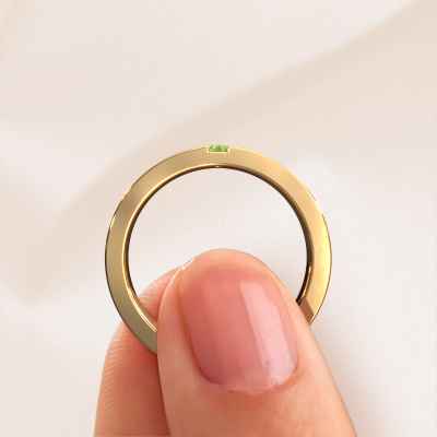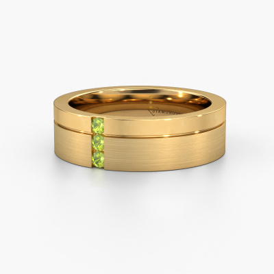 Een echte stijlvolle 14 Carat traditionele trouwring! Deze prachtige trouwring voor dames is gezet met ronde peridoot. Doordat onze goudsmeden de gouden trouwring met de hand vervaardigen in ons eigen atelier, worden de peridoot met uiterste precisie geplaatst, waardoor de lichtinval op de peridoot optimaal is. De breedte van deze traditionele WH0327L16B trouwring is ±6 mm en hij is mat/glimmende afgewerkt. Nadat je je trouwring besteld hebt, gaat onze goudsmid direct met jouw trouwring aan de slag. Wist je dat wij de nieuwste technieken gecombineerd hebben met het oude ambacht? Zo ontwerpen wij eerst jouw sieraad in 3D. Hier kun je, indien gewenst, een dummy van ontvangen, zodat je al kunt kijken of deze helemaal naar jouw wens is. Vervolgens vervaardigt onze perfectionistische goudsmid jouw trouwring in ons atelier, geheel met de hand. Onze passie ligt daarin, dat we iedere keer opnieuw een unieke trouwring kunnen creëren, met de beste afwerking. Zodat jij uiteindelijk die trouwring ontvangt, die helemaal naar jouw wensen vervaardigd is.Heb je nog specifieke wensen? Bijvoorbeeld een glimmende of juiste matte ring (kostenloos)? Breder of smaller? De mogelijkheden voor deze trouwring groot, neem gerust contact met onze designers op om jouw ring nog verder naar jouw voorkeuren aan te passen. Ook als je ideeën hebt voor een ontwerp van je eigen trouwringen of een bepaalde ring in de winkel hebt gezien, kun je deze altijd bespreken met onze sieradenontwerpers. Zij vinden het een mooie uitdaging om precies die ring te ontwerpen die jij in gedachten hebt!Omdat wij zelf alle trouwringen maken en direct aan jou leveren kunnen wij je trouwringen leveren tegen een prijs die je nergens anders zult tegenkomen. Een ring wordt pas gemaakt als we een bestelling krijgen, hierdoor hebben wij geen dure voorraden en kunnen wij jou de beste prijs garanderen.Om het voor jou makkelijker te maken kun je ieder besteld sieraad binnen 30 dagen na aflevering eenvoudig weer retour sturen.