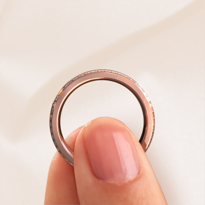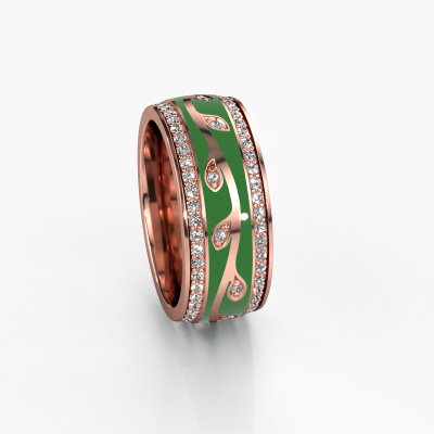 Wist je dat emaille juwelen kleine meesterwerkjes zijn? Een geëmailleerde trouwring is gemaakt door poeders van glas en kleurstof te mengen op een edelmetaal. Door het glanzende, transparante effect laat je je trouwring werkelijk stralen. Een mooie manier om jouw dames trouwring zo persoonlijk mogelijk te maken, aangepast aan jouw stijl. Juist ook omdat de keuze uit mogelijke kleuren zeer breed is! Alle emaille trouwringen, ook ringen, worden door onze ervaren goudsmid handgemaakt in ons eigen atelier. Hierdoor kan jouw vintage trouwring tot in de kleinste details geperfectioneerd worden. En daar gaat de goudsmid uiteraard voor: pure perfectie van jouw unieke trouwring! De breedte van deze rosé gouden WH3051L28B trouwring is ±8 mm.