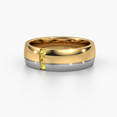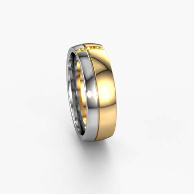 Een unieke bicolor gouden dames trouwring, door jullie zelf ontworpen en ambachtelijk met de hand gemaakt door onze goudsmid in ons eigen atelier! Een prachtig symbool, dat jullie liefde weerspiegelt en je je leven lang mee mag dragen! Elke trouwring die wij leveren is in ons eigen atelier ambachtelijk met de hand gemaakt. Hierdoor is het mogelijk om al je wensen te verwezenlijken in jouw persoonlijke ring, die bij jouw stijl past. In deze moderne WH0223L56A trouwring is ronde gele saffier geplaatst, hij is ±6 mm breed en heeft een glimmende afwerking. In ons gespecialiseerde team verwerkt de sieradenontwerper jouw trouwring tot een 3D ontwerp. Wanneer je wilt, kun je hier ook een dummy van bestellen, zodat je de trouwring al van tevoren kunt zien en passen. Onze goudsmid werkt vervolgens in ons atelier met de hand om heel nauwkeurig jouw unieke ring te vervaardigen. Een heel secuur werkje, zowel het vervaardigen als de afwerking vragen een scherp oog. En dat is het mooie van het vak, want uiteindelijk is jouw unieke trouwring het resultaat van een echt ambacht, dat met veel passie uitgevoerd wordt!Je kunt je trouwens ook laten inspireren door deze trouwring en de ring nog verder naar smaak aanpassen. Wil je bijvoorbeeld liever een bredere of smallere ring of een glimmende of matte ring? Alles is mogelijk. Ook als je zelf een idee hebt voor prachtige trouwringen, of ergens anders een mooie set hebt gezien, die je naar eigen wens zou willen aanpassen: geen probleem! Neem gerust contact op, onze designers bespreken graag de mogelijkheden met je!Doordat wij alle trouwringen pas vervaardigen, zodra een bestelling geplaatst wordt, hebben wij geen dure voorraden. Ook worden alle sieraden in eigen atelier naar ambachtelijk vakmanschap gemaakt. Hierdoor kunnen we jou een beste prijsgarantie leveren, de prijs ligt 30% lager dan bij andere juweliers. En dat terwijl jouw trouwringen geleverd worden in de vertrouwde juwelierskwaliteit!Om het voor jou makkelijker te maken kun je ieder besteld sieraad binnen 30 dagen na aflevering eenvoudig weer retour sturen.