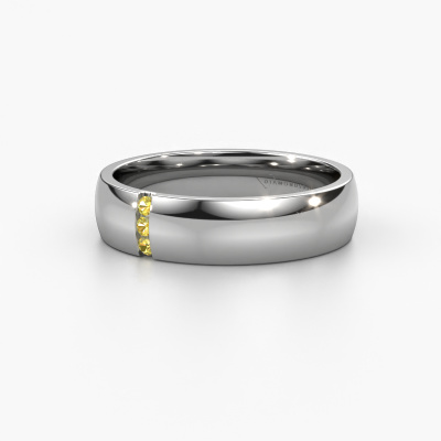 Een unieke bicolor witgouden dames trouwring, door jullie zelf ontworpen en ambachtelijk met de hand gemaakt door onze goudsmid in ons eigen atelier! Een prachtig symbool, dat jullie liefde weerspiegelt en je je leven lang mee mag dragen! Elke trouwring die wij leveren is in ons eigen atelier ambachtelijk met de hand gemaakt. Hierdoor is het mogelijk om al je wensen te verwezenlijken in jouw persoonlijke ring, die bij jouw stijl past. In deze moderne WH1103L25AP trouwring is ronde gele saffier geplaatst, hij is ±5 mm breed en heeft een glimmende afwerking.