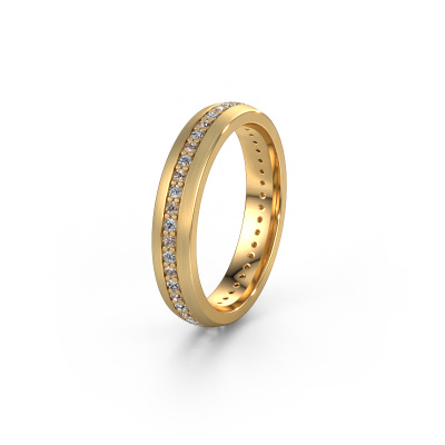 Wist je dat de Eternity trouwring ook niet alleen van uitstraling, maar ook symbolisch een prachtige trouwring is? De Eternity trouwring, met de naast elkaar geplaatste diamantjes, staat voor jullie eeuwigdurende liefde. Doordat de steentjes geheel rondom zijn geplaatst, is er geen begin en geen eind. Prachtig toch? De breedte van deze pavé gouden WH0103L24BM dames trouwring is ±4 mm breed en hij is gezet met bruine diamant 0.44 crt. Je kunt in de configurator hierboven aangeven welke combinatie van edelmetalen bij jou passen, alles is mogelijk! Het is wel goed om te kijken naar de eigenschappen van de edelmetalen. Goud en zilver zijn bijvoorbeeld twee zachtere edelmetalen. Hoe puurder deze door onze goudsmid worden samengesteld, hoe hoger het aantal karaat, hoe zachter de trouwring is. Maar uiteraard hard genoeg voor het verwerken in een exclusieve trouwring! Wanneer je een edelmetaal zou willen, die je leven lang mee zal gaan, dan raden wij platina aan. Dit is het sterkste en meest duurzame edelmetaal waar onze goudsmid mee werkt.Deze trouwring kan ook als inspiratiebron dienen. Wil jij de ring mat of glimmend (kosteloos), of zou je hem breder of smaller willen? Alles is mogelijk. Omdat er talloze variaties mogelijk zijn kunnen wij niet alles tonen op onze website. Heb je zelf een idee voor mooie trouwringen of heb je ergens anders een mooie trouwringen set gezien? Neem dan eens contact met ons op, onze designers staan voor je klaar om je hierbij te helpen.Trouwringen worden pas vervaardigd als deze besteld worden. Het grote voordeel hiervan is dat wij geen dure voorraden hebben, en dat zie je terug in de prijs. Ook worden alle trouwringen in ons eigen atelier gemaakt door onze eigen goudsmeden, en kunnen we je hierdoor een beste prijsgarantie geven, voor een ring in vertrouwde juwelierskwaliteit.Om het voor jou makkelijker te maken kun je ieder besteld sieraad binnen 30 dagen na aflevering eenvoudig weer retour sturen.
