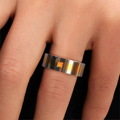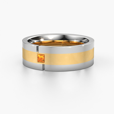Een 2 kleuren trouwring! Uniek, net als jullie relatie uniek is! Iedereen is anders en daarom wil je ook geen standaard trouwring. Deze exclusieve WH2042P dames trouwring is door onze juwelen ontwerpers ontworpen en wordt door onze goudsmid met de hand vervaardigd. Daarbij worden het oude, pure ambacht gecombineerd met de modernste technieken om het mooiste resultaat te creëren. Want onze goudsmid gaat voor perfectie in alle facetten. Een unieke, handgemaakte trouwring, gemaakt om jullie liefde te bezegelen op de grote dag! In deze exclusieve WH2042P trouwring van goud is citrien geplaatst, hij is ±7 mm breed en heeft een glimmende afwerking. In ons gespecialiseerde team verwerkt de sieradenontwerper jouw trouwring tot een 3D ontwerp. Wanneer je wilt, kun je hier ook een dummy van bestellen, zodat je de trouwring al van tevoren kunt zien en passen. Onze goudsmid werkt vervolgens in ons atelier met de hand om heel nauwkeurig jouw unieke ring te vervaardigen. Een heel secuur werkje, zowel het vervaardigen als de afwerking vragen een scherp oog. En dat is het mooie van het vak, want uiteindelijk is jouw unieke trouwring het resultaat van een echt ambacht, dat met veel passie uitgevoerd wordt!Heb je nog specifieke wensen? Bijvoorbeeld een glimmende of juiste matte ring (kostenloos)? Breder of smaller? De mogelijkheden voor deze trouwring groot, neem gerust contact met onze designers op om jouw ring nog verder naar jouw voorkeuren aan te passen. Ook als je ideeën hebt voor een ontwerp van je eigen trouwringen of een bepaalde ring in de winkel hebt gezien, kun je deze altijd bespreken met onze sieradenontwerpers. Zij vinden het een mooie uitdaging om precies die ring te ontwerpen die jij in gedachten hebt!Doordat wij alle trouwringen pas vervaardigen, zodra een bestelling geplaatst wordt, hebben wij geen dure voorraden. Ook worden alle sieraden in eigen atelier naar ambachtelijk vakmanschap gemaakt. Hierdoor kunnen we jou een beste prijsgarantie leveren, de prijs ligt 30% lager dan bij andere juweliers. En dat terwijl jouw trouwringen geleverd worden in de vertrouwde juwelierskwaliteit!Om het voor jou makkelijker te maken kun je ieder besteld sieraad binnen 30 dagen na aflevering eenvoudig weer retour sturen.