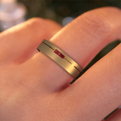 Deze moderne dames trouwring is een prachtige, moderne trouwring, die jullie unieke liefde voor elkaar symboliseert! Perfect passend bij de man met een hedendaagse stijl. En deze kunnen jullie helemaal samenstellen naar jullie eigen wensen en ideeën. Onze goudsmid ziet in iedere trouwring een mooie uitdaging en gaat met jullie ontwerp in ons atelier graag aan de slag. Met veel zorg en passie vervaardigt hij jullie trouwring WH0158L14X ±4,5x1.4 mm met de hand en maakt daarbij gebruik van zowel de meest innovatieve technieken als het pure vakmanschap. Met deze unieke, moderne trouwring als resultaat! In deze moderne WH0158L14X trouwring is princess robijn geplaatst, hij is ±4,5 mm breed en heeft een matte afwerking. In ons gespecialiseerde team verwerkt de sieradenontwerper jouw trouwring tot een 3D ontwerp. Wanneer je wilt, kun je hier ook een dummy van bestellen, zodat je de trouwring al van tevoren kunt zien en passen. Onze goudsmid werkt vervolgens in ons atelier met de hand om heel nauwkeurig jouw unieke ring te vervaardigen. Een heel secuur werkje, zowel het vervaardigen als de afwerking vragen een scherp oog. En dat is het mooie van het vak, want uiteindelijk is jouw unieke trouwring het resultaat van een echt ambacht, dat met veel passie uitgevoerd wordt!Laat je gerust inspireren door onze modellen. Je kunt deze trouwring ook nog verder aanpassen: breder of smaller, glimmend of juist mat? Geen probleem! Ook als je zelf ideeën hebt voor bijzondere trouwringen, staan onze sieradenontwerpers graag voor je klaar om je droomring verder uit te werken. Neem gerust met ons contact op!Omdat wij zelf alle trouwringen maken en direct aan u leveren kunnen wij u trouwringen leveren tegen een prijs die u nergens anders zult tegenkomen. Een ring wordt pas gemaakt als we een bestelling krijgen, hierdoor hebben wij geen dure voorraden en kunnen wij u de beste prijs garanderen.Om het voor jou makkelijker te maken kun je ieder besteld sieraad binnen 30 dagen na aflevering eenvoudig weer retour sturen.
