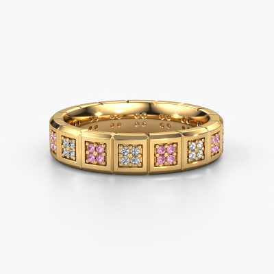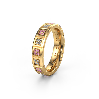 Een eternity trouwring! Uniek, net als jullie relatie uniek is! Iedereen is anders en daarom wil je ook geen standaard trouwring. Deze exclusieve WH2056L15DP dames trouwring is door onze juwelen ontwerpers ontworpen en wordt door onze goudsmid met de hand vervaardigd. Daarbij worden het oude, pure ambacht gecombineerd met de modernste technieken om het mooiste resultaat te creëren. Want onze goudsmid gaat voor perfectie in alle facetten. Een unieke, handgemaakte trouwring, gemaakt om jullie liefde te bezegelen op de grote dag! In deze exclusieve WH2056L15DP trouwring van goud is roze saffier geplaatst, hij is ±5 mm breed en heeft een glimmende afwerking. Een trouwring uitzoeken is niet iets dat je even snel wilt doen. Uiteindelijk willen jullie die ring dragen, die precies bij jullie stijl en wensen past. En die ook jullie liefde en relatie met elkaar weerspiegelt. Een ring, die bedoeld is om een leven lang te dragen, en symbool staat voor alles wat jullie verbindt. Daarom vinden wij het zo mooi, dat we precies de ring die jullie in gedachten hebben, kunnen vervaardigen. Dit gaat allemaal ambachtelijk met de hand in ons eigen atelier, zodat we ieder detail heel precies kunnen verwerken. Een mooier vak bestaat niet!Heb je nog meer wensen voor je trouwring en kun je deze hier niet terug vinden? Neem gerust contact op met onze designers! Zo kunnen we een ring juist mat maken, breder of smaller. Ook gravures zijn in de meeste gevallen mogelijk. En heb je een eigen idee voor mooie trouwringen? Onze sieradenontwerpers vinden het een prachtige uitdaging om jouw ring helemaal naar jouw voorstelling te ontwerpen!Alle trouwringen worden in ons eigen atelier gemaakt, zodra een bestelling binnenkomt. Hierdoor hoeven wij geen dure voorraden te hebben en kunnen wij je trouwringen leveren tegen een prijs die je bij geen andere juwelier tegen zult komen.Om het voor jou makkelijker te maken kun je ieder besteld sieraad binnen 30 dagen na aflevering eenvoudig weer retour sturen.