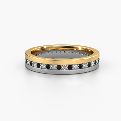 Wist je dat de Eternity trouwring ook niet alleen van uitstraling, maar ook symbolisch een prachtige trouwring is? De Eternity trouwring, met de naast elkaar geplaatste diamantjes, staat voor jullie eeuwigdurende liefde. Doordat de steentjes geheel rondom zijn geplaatst, is er geen begin en geen eind. Prachtig toch? De breedte van deze royale gouden WH0203L14BPM dames trouwring is ±4 mm breed en hij is gezet met zwarte diamant 0.484 crt. Een trouwring uitzoeken is niet iets dat je even snel wilt doen. Uiteindelijk willen jullie die ring dragen, die precies bij jullie stijl en wensen past. En die ook jullie liefde en relatie met elkaar weerspiegelt. Een ring, die bedoeld is om een leven lang te dragen, en symbool staat voor alles wat jullie verbindt. Daarom vinden wij het zo mooi, dat we precies de ring die jullie in gedachten hebben, kunnen vervaardigen. Dit gaat allemaal ambachtelijk met de hand in ons eigen atelier, zodat we ieder detail heel precies kunnen verwerken. Een mooier vak bestaat niet!Heb je nog specifieke wensen? Bijvoorbeeld een glimmende of juiste matte ring (kostenloos)? Breder of smaller? De mogelijkheden voor deze trouwring groot, neem gerust contact met onze designers op om jouw ring nog verder naar jouw voorkeuren aan te passen. Ook als je ideeën hebt voor een ontwerp van je eigen trouwringen of een bepaalde ring in de winkel hebt gezien, kun je deze altijd bespreken met onze sieradenontwerpers. Zij vinden het een mooie uitdaging om precies die ring te ontwerpen die jij in gedachten hebt!Trouwringen worden pas vervaardigd als deze besteld worden. Het grote voordeel hiervan is dat wij geen dure voorraden hebben, en dat zie je terug in de prijs. Ook worden alle trouwringen in ons eigen atelier gemaakt door onze eigen goudsmeden, en kunnen we je hierdoor een beste prijsgarantie geven, voor een ring in vertrouwde juwelierskwaliteit.Om het voor jou makkelijker te maken kun je ieder besteld sieraad binnen 30 dagen na aflevering eenvoudig weer retour sturen.