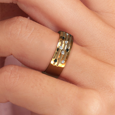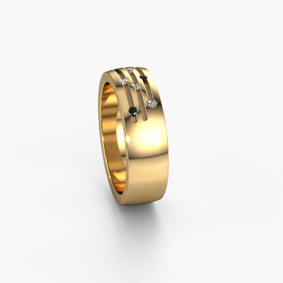 Een speciale trouwring! Uniek, net als jullie relatie uniek is! Iedereen is anders en daarom wil je ook geen standaard trouwring. Deze moderne WH0134L26B dames trouwring is door onze juwelen ontwerpers ontworpen en wordt door onze goudsmid met de hand vervaardigd. Daarbij worden het oude, pure ambacht gecombineerd met de modernste technieken om het mooiste resultaat te creëren. Want onze goudsmid gaat voor perfectie in alle facetten. Een unieke, handgemaakte trouwring, gemaakt om jullie liefde te bezegelen op de grote dag! In deze moderne WH0134L26B trouwring van goud is zwarte diamant geplaatst, hij is ±6 mm breed en heeft een mat/glimmende afwerking. Je kunt in de configurator hierboven aangeven welke combinatie van edelmetalen bij jou passen, alles is mogelijk! Het is wel goed om te kijken naar de eigenschappen van de edelmetalen. Goud en zilver zijn bijvoorbeeld twee zachtere edelmetalen. Hoe puurder deze door onze goudsmid worden samengesteld, hoe hoger het aantal karaat, hoe zachter de trouwring is. Maar uiteraard hard genoeg voor het verwerken in een moderne trouwring! Wanneer je een edelmetaal zou willen, die je leven lang mee zal gaan, dan raden wij platina aan. Dit is het sterkste en meest duurzame edelmetaal waar onze goudsmid mee werkt.Heb je nog specifieke wensen? Bijvoorbeeld een glimmende of juiste matte ring (kostenloos)? Breder of smaller? De mogelijkheden voor deze trouwring groot, neem gerust contact met onze designers op om jouw ring nog verder naar jouw voorkeuren aan te passen. Ook als je ideeën hebt voor een ontwerp van je eigen trouwringen of een bepaalde ring in de winkel hebt gezien, kun je deze altijd bespreken met onze sieradenontwerpers. Zij vinden het een mooie uitdaging om precies die ring te ontwerpen die jij in gedachten hebt!Omdat wij zelf alle trouwringen maken en direct aan u leveren kunnen wij u trouwringen leveren tegen een prijs die u nergens anders zult tegenkomen. Een ring wordt pas gemaakt als we een bestelling krijgen, hierdoor hebben wij geen dure voorraden en kunnen wij u de beste prijs garanderen.Om het voor jou makkelijker te maken kun je ieder besteld sieraad binnen 30 dagen na aflevering eenvoudig weer retour sturen.