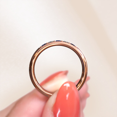 Deze klassieke glimmende trouwring voor dames met vlak-bol profiel is een prachtige trouwring om je liefde mee te bezegelen. Een tijdloze trouwring, met speciaal geselecteerde saffier. In het voorbeeld van deze rosé gouden WH0111L35BP trouwring is ronde saffier gebruikt 2.7 mm. Onze goudsmeden maken gebruik van de modernste technieken, gecombineerd met het oude ambacht van goudsmeden, en vervaardigt jouw trouwring in ons eigen atelier. Op deze manier ontvang jij een unieke, handgemaakte ±5x2 mm trouwring, tot in de kleinste details afgewerkt, helemaal passend bij jouw stijl. Een trouwring uitzoeken is niet iets dat je even snel wilt doen. Uiteindelijk willen jullie die ring dragen, die precies bij jullie stijl en wensen past. En die ook jullie liefde en relatie met elkaar weerspiegelt. Een ring, die bedoeld is om een leven lang te dragen, en symbool staat voor alles wat jullie verbindt. Daarom vinden wij het zo mooi, dat we precies de ring die jullie in gedachten hebben, kunnen vervaardigen. Dit gaat allemaal ambachtelijk met de hand in ons eigen atelier, zodat we ieder detail heel precies kunnen verwerken. Een mooier vak bestaat niet!Heb je nog meer wensen voor je trouwring en kun je deze hier niet terug vinden? Neem gerust contact op met onze designers! Zo kunnen we een ring juist mat maken, breder of smaller. Ook gravures zijn in de meeste gevallen mogelijk. En heb je een eigen idee voor mooie trouwringen? Onze sieradenontwerpers vinden het een prachtige uitdaging om jouw ring helemaal naar jouw voorstelling te ontwerpen!Door de modernste technieken, gecombineerd met ambachtelijk handwerk, kunnen wij je trouwringen leveren voor een prijs die altijd 30% goedkoper is. Ook doordat we alle trouwringen zelf gaan maken, zodra een bestelling komt, hebben we geen dure voorraden en kunnen we daardoor jou de beste prijsgarantie geven, voor juwelierskwaliteit!Om het voor jou makkelijker te maken kun je ieder besteld sieraad binnen 30 dagen na aflevering eenvoudig weer retour sturen.