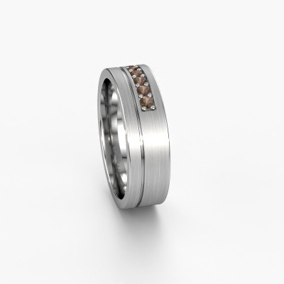 Een echte stijlvolle traditionele trouwring! Deze prachtige trouwring voor dames is gezet met ronde rookkwarts. Doordat onze goudsmeden de platina trouwring met de hand vervaardigen in ons eigen atelier, worden de rookkwarts met uiterste precisie geplaatst, waardoor de lichtinval op de rookkwarts optimaal is. De breedte van deze traditionele WH0312L16AM trouwring is ±6 mm en hij is matte afgewerkt. Nadat je je trouwring besteld hebt, gaat onze goudsmid direct met jouw trouwring aan de slag. Wist je dat wij de nieuwste technieken gecombineerd hebben met het oude ambacht? Zo ontwerpen wij eerst jouw sieraad in 3D. Hier kun je, indien gewenst, een dummy van ontvangen, zodat je al kunt kijken of deze helemaal naar jouw wens is. Vervolgens vervaardigt onze perfectionistische goudsmid jouw trouwring in ons atelier, geheel met de hand. Onze passie ligt daarin, dat we iedere keer opnieuw een unieke trouwring kunnen creëren, met de beste afwerking. Zodat jij uiteindelijk die trouwring ontvangt, die helemaal naar jouw wensen vervaardigd is.Je kunt je trouwens ook laten inspireren door deze trouwring en de ring nog verder naar smaak aanpassen. Wil je bijvoorbeeld liever een bredere of smallere ring of een glimmende of matte ring? Alles is mogelijk. Ook als je zelf een idee hebt voor prachtige trouwringen, of ergens anders een mooie set hebt gezien, die je naar eigen wens zou willen aanpassen: geen probleem! Neem gerust contact op, onze designers bespreken graag de mogelijkheden met je!Doordat wij alle trouwringen pas vervaardigen, zodra een bestelling geplaatst wordt, hebben wij geen dure voorraden. Ook worden alle sieraden in eigen atelier naar ambachtelijk vakmanschap gemaakt. Hierdoor kunnen we jou een beste prijsgarantie leveren, de prijs ligt 30% lager dan bij andere juweliers. En dat terwijl jouw trouwringen geleverd worden in de vertrouwde juwelierskwaliteit!Om het voor jou makkelijker te maken kun je ieder besteld sieraad binnen 30 dagen na aflevering eenvoudig weer retour sturen.