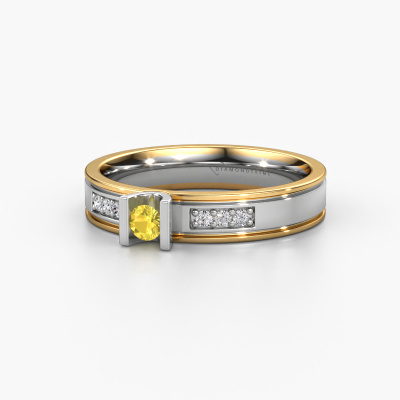 Deze moderne dames trouwring is een prachtige, moderne trouwring, die jullie unieke liefde voor elkaar symboliseert! Perfect passend bij de man met een hedendaagse stijl. En deze kunnen jullie helemaal samenstellen naar jullie eigen wensen en ideeën. Onze goudsmid ziet in iedere trouwring een mooie uitdaging en gaat met jullie ontwerp in ons atelier graag aan de slag. Met veel zorg en passie vervaardigt hij jullie trouwring WH2108L14A met de hand en maakt daarbij gebruik van zowel de meest innovatieve technieken als het pure vakmanschap. Met deze unieke, moderne trouwring als resultaat! In deze moderne WH2108L14A trouwring is ronde gele saffier geplaatst, hij is ±4 mm breed en heeft een glimmende afwerking. Je kunt in de configurator hierboven aangeven welke combinatie van edelmetalen bij jou passen, alles is mogelijk! Het is wel goed om te kijken naar de eigenschappen van de edelmetalen. Goud en zilver zijn bijvoorbeeld twee zachtere edelmetalen. Hoe puurder deze door onze goudsmid worden samengesteld, hoe hoger het aantal karaat, hoe zachter de trouwring is. Maar uiteraard hard genoeg voor het verwerken in een moderne trouwring! Wanneer je een edelmetaal zou willen, die je leven lang mee zal gaan, dan raden wij platina aan. Dit is het sterkste en meest duurzame edelmetaal waar onze goudsmid mee werkt.Laat je gerust inspireren door onze modellen. Je kunt deze trouwring ook nog verder aanpassen: breder of smaller, glimmend of juist mat? Geen probleem! Ook als je zelf ideeën hebt voor bijzondere trouwringen, staan onze sieradenontwerpers graag voor je klaar om je droomring verder uit te werken. Neem gerust met ons contact op!Omdat wij zelf alle trouwringen maken en direct aan u leveren kunnen wij u trouwringen leveren tegen een prijs die u nergens anders zult tegenkomen. Een ring wordt pas gemaakt als we een bestelling krijgen, hierdoor hebben wij geen dure voorraden en kunnen wij u de beste prijs garanderen.Om het voor jou makkelijker te maken kun je ieder besteld sieraad binnen 30 dagen na aflevering eenvoudig weer retour sturen.