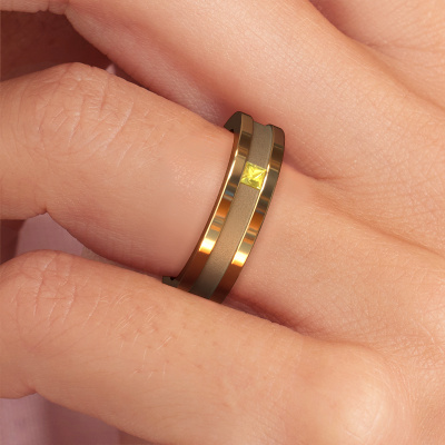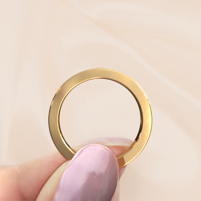 In ons atelier maken we gebruik van de meest innovatieve technieken, gecombineerd met het pure ambacht van goudsmeden, om jouw dames trouwring te vervaardigen. Dit resulteert in deze moderne WH2001L trouwring, die tot in de kleinste details perfect wordt afgewerkt met de hand door onze goudsmeden. En daar zijn we trots op! Deze gouden WH2001L trouwring met vlak-bol profiel voor dames is ±5 mm breed en is glimmende afgewerkt met gele saffier. In ons gespecialiseerde team verwerkt de sieradenontwerper jouw trouwring tot een 3D ontwerp. Wanneer je wilt, kun je hier ook een dummy van bestellen, zodat je de trouwring al van tevoren kunt zien en passen. Onze goudsmid werkt vervolgens in ons atelier met de hand om heel nauwkeurig jouw unieke ring te vervaardigen. Een heel secuur werkje, zowel het vervaardigen als de afwerking vragen een scherp oog. En dat is het mooie van het vak, want uiteindelijk is jouw unieke trouwring het resultaat van een echt ambacht, dat met veel passie uitgevoerd wordt!Heb je nog specifieke wensen? Bijvoorbeeld een glimmende of juiste matte ring (kostenloos)? Breder of smaller? De mogelijkheden voor deze trouwring groot, neem gerust contact met onze designers op om jouw ring nog verder naar jouw voorkeuren aan te passen. Ook als je ideeën hebt voor een ontwerp van je eigen trouwringen of een bepaalde ring in de winkel hebt gezien, kun je deze altijd bespreken met onze sieradenontwerpers. Zij vinden het een mooie uitdaging om precies die ring te ontwerpen die jij in gedachten hebt!Doordat wij alle trouwringen pas vervaardigen, zodra een bestelling geplaatst wordt, hebben wij geen dure voorraden. Ook worden alle sieraden in eigen atelier naar ambachtelijk vakmanschap gemaakt. Hierdoor kunnen we jou een beste prijsgarantie leveren, de prijs ligt 30% lager dan bij andere juweliers. En dat terwijl jouw trouwringen geleverd worden in de vertrouwde juwelierskwaliteit!Om het voor jou makkelijker te maken kun je ieder besteld sieraad binnen 30 dagen na aflevering eenvoudig weer retour sturen.