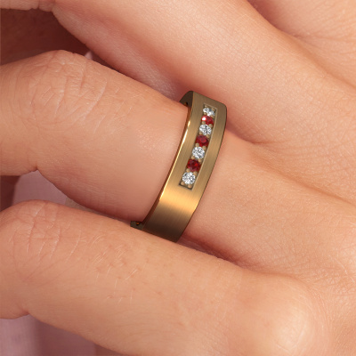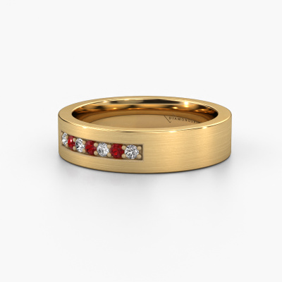 In ons atelier maken we gebruik van de meest innovatieve technieken, gecombineerd met het pure ambacht van goudsmeden, om jouw dames trouwring te vervaardigen. Dit resulteert in deze moderne WH0112L15BM trouwring, die tot in de kleinste details perfect wordt afgewerkt met de hand door onze goudsmeden. En daar zijn we trots op! Deze gouden WH0112L15BM trouwring met recht profiel voor dames is ±5 mm breed en is matte afgewerkt met robijn. Goud is hét symbool van de liefde, en daarom verwerkt onze goudsmid dit graag in een moderne trouwring voor jou. Wij zijn aangesloten bij de Responsible Jewellery Council. Dit betekent dat wij werken met eerlijk gewonnen goud, iets waar we uiteraard trots op zijn. Het is trouwens ook mogelijk om je eigen goud te laten verwerken in jouw trouwring. Doordat alle sieraden door onze goudsmid met de hand in ons atelier wordt gemaakt, kunnen wij jou deze optie aanbieden. Hierdoor heb jij de gelegenheid om jouw ring nog persoonlijker te maken, een ring met een verhaal!Heb je nog specifieke wensen? Bijvoorbeeld een glimmende of juiste matte ring (kostenloos)? Breder of smaller? De mogelijkheden voor deze trouwring groot, neem gerust contact met onze designers op om jouw ring nog verder naar jouw voorkeuren aan te passen. Ook als je ideeën hebt voor een ontwerp van je eigen trouwringen of een bepaalde ring in de winkel hebt gezien, kun je deze altijd bespreken met onze sieradenontwerpers. Zij vinden het een mooie uitdaging om precies die ring te ontwerpen die jij in gedachten hebt!Trouwringen worden pas vervaardigd als deze besteld worden. Het grote voordeel hiervan is dat wij geen dure voorraden hebben, en dat zie je terug in de prijs. Ook worden alle trouwringen in ons eigen atelier gemaakt door onze eigen goudsmeden, en kunnen we je hierdoor een beste prijsgarantie geven, voor een ring in vertrouwde juwelierskwaliteit.Om het voor jou makkelijker te maken kun je ieder besteld sieraad binnen 30 dagen na aflevering eenvoudig weer retour sturen.