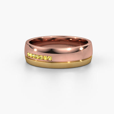 In ons atelier maken we gebruik van de meest innovatieve technieken, gecombineerd met het pure ambacht van goudsmeden, om jouw dames trouwring te vervaardigen. Dit resulteert in deze traditionele WH0308L26AP trouwring, die tot in de kleinste details perfect wordt afgewerkt met de hand door onze goudsmeden. En daar zijn we trots op! Deze rosé gouden WH0308L26AP trouwring met vlak-bol profiel voor dames is ±6 mm breed en is glimmende afgewerkt met gele saffier. Nadat je je trouwring besteld hebt, gaat onze goudsmid direct met jouw trouwring aan de slag. Wist je dat wij de nieuwste technieken gecombineerd hebben met het oude ambacht? Zo ontwerpen wij eerst jouw sieraad in 3D. Hier kun je, indien gewenst, een dummy van ontvangen, zodat je al kunt kijken of deze helemaal naar jouw wens is. Vervolgens vervaardigt onze perfectionistische goudsmid jouw trouwring in ons atelier, geheel met de hand. Onze passie ligt daarin, dat we iedere keer opnieuw een unieke trouwring kunnen creëren, met de beste afwerking. Zodat jij uiteindelijk die trouwring ontvangt, die helemaal naar jouw wensen vervaardigd is.Deze trouwring kan ook als inspiratiebron dienen. Wil jij de ring mat of glimmend (kosteloos), of zou je hem breder of smaller willen? Alles is mogelijk. Omdat er talloze variaties mogelijk zijn kunnen wij niet alles tonen op onze website. Heb je zelf een idee voor mooie trouwringen of heb je ergens anders een mooie trouwringen set gezien? Neem dan eens contact met ons op, onze designers staan voor je klaar om je hierbij te helpen.Door de modernste technieken, gecombineerd met ambachtelijk handwerk, kunnen wij je trouwringen leveren voor een prijs die altijd 30% goedkoper is. Ook doordat we alle trouwringen zelf gaan maken, zodra een bestelling komt, hebben we geen dure voorraden en kunnen we daardoor jou de beste prijsgarantie geven, voor juwelierskwaliteit!Om het voor jou makkelijker te maken kun je ieder besteld sieraad binnen 30 dagen na aflevering eenvoudig weer retour sturen.