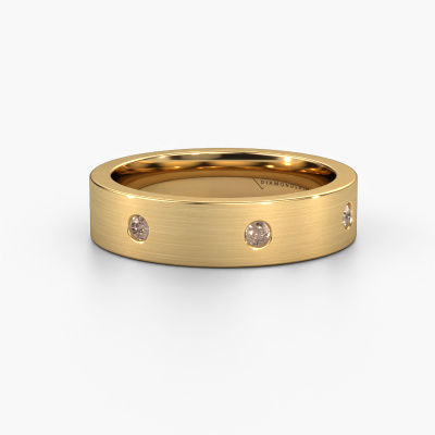 Een moderne gouden Eternity trouwring is een ring, met een prachtige symbolische betekenis. Doordat er geen begin en einde te zien is in de rij met bruine diamanten, laat je zien dat er ook aan jullie liefde geen begin en geen einde is. Een trouwring om tot in lengte van dagen te dragen, als bezegeling van jullie relatie. De breedte van deze eternity WH0105L15BM dames trouwring is ±5 mm breed en hij is gezet met bruine diamant 0.21 crt. Nadat je je trouwring besteld hebt, gaat onze goudsmid direct met jouw trouwring aan de slag. Wist je dat wij de nieuwste technieken gecombineerd hebben met het oude ambacht? Zo ontwerpen wij eerst jouw sieraad in 3D. Hier kun je, indien gewenst, een dummy van ontvangen, zodat je al kunt kijken of deze helemaal naar jouw wens is. Vervolgens vervaardigt onze perfectionistische goudsmid jouw trouwring in ons atelier, geheel met de hand. Onze passie ligt daarin, dat we iedere keer opnieuw een unieke trouwring kunnen creëren, met de beste afwerking. Zodat jij uiteindelijk die trouwring ontvangt, die helemaal naar jouw wensen vervaardigd is.Je kunt je trouwens ook laten inspireren door deze trouwring en de ring nog verder naar smaak aanpassen. Wil je bijvoorbeeld liever een bredere of smallere ring of een glimmende of matte ring? Alles is mogelijk. Ook als je zelf een idee hebt voor prachtige trouwringen, of ergens anders een mooie set hebt gezien, die je naar eigen wens zou willen aanpassen: geen probleem! Neem gerust contact op, onze designers bespreken graag de mogelijkheden met je!Omdat wij zelf alle trouwringen maken en direct aan u leveren kunnen wij u trouwringen leveren tegen een prijs die u nergens anders zult tegenkomen. Een ring wordt pas gemaakt als we een bestelling krijgen, hierdoor hebben wij geen dure voorraden en kunnen wij u de beste prijs garanderen.Om het voor jou makkelijker te maken kun je ieder besteld sieraad binnen 30 dagen na aflevering eenvoudig weer retour sturen.
