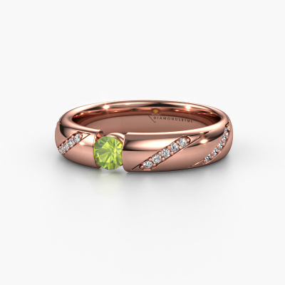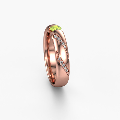 In deze exclusieve trouwring voor dames smelten ambachtelijk vakmanschap, liefde en passie samen met de modernste technieken. Het vraagt een geoefend oog, geduld en een vaardige hand om deze rosé gouden trouwring tot in de kleinste details perfect samen te stellen. Maar daar gaan onze goudsmeden dan ook absoluut voor! Op deze manier creëer je een exclusieve ring, tot in de details aangepast naar jullie wensen. En handgemaakt in ons eigen atelier. In deze exclusieve WH2102L34A trouwring is peridoot 4 mm geplaatst, hij is ±5 mm breed en heeft een glimmende afwerking.