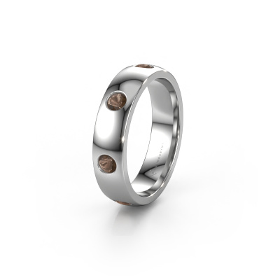 Wist je dat de Eternity trouwring ook niet alleen van uitstraling, maar ook symbolisch een prachtige trouwring is? De Eternity trouwring, met de naast elkaar geplaatste diamantjes, staat voor jullie eeuwigdurende liefde. Doordat de steentjes geheel rondom zijn geplaatst, is er geen begin en geen eind. Prachtig toch? De breedte van deze royale platina WH0105L25BP dames trouwring is ±5 mm breed en hij is gezet met rookkwarts 3 mm. Met behulp van onze configurator kun je de trouwring in verschillende edelmetalen en kleuren samenstellen. Onze sieradenontwerpers zetten je ontwerp vervolgens om in een 3D ontwerp, zodat je precies kunt zien hoe je sieraad eruit komt te zien. Onze goudsmeden vervaardigen daarna je trouwring met de hand, volgens de oude ambachten. Het is namelijk onze uitdaging om precies die trouwring te vervaardigen die jij in gedachten hebt. Een unieke trouwring die helemaal bij jullie stijl past!Je kunt je trouwens ook laten inspireren door deze trouwring en de ring nog verder naar smaak aanpassen. Wil je bijvoorbeeld liever een bredere of smallere ring of een glimmende of matte ring? Alles is mogelijk. Ook als je zelf een idee hebt voor prachtige trouwringen, of ergens anders een mooie set hebt gezien, die je naar eigen wens zou willen aanpassen: geen probleem! Neem gerust contact op, onze designers bespreken graag de mogelijkheden met je!Trouwringen worden pas vervaardigd als deze besteld worden. Het grote voordeel hiervan is dat wij geen dure voorraden hebben, en dat zie je terug in de prijs. Ook worden alle trouwringen in ons eigen atelier gemaakt door onze eigen goudsmeden, en kunnen we je hierdoor een beste prijsgarantie geven, voor een ring in vertrouwde juwelierskwaliteit.Om het voor jou makkelijker te maken kun je ieder besteld sieraad binnen 30 dagen na aflevering eenvoudig weer retour sturen.