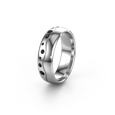 Een golfslag trouwring! Uniek, net als jullie relatie uniek is! Iedereen is anders en daarom wil je ook geen standaard trouwring. Deze exclusieve WH0717L36AP dames trouwring is door onze juwelen ontwerpers ontworpen en wordt door onze goudsmid met de hand vervaardigd. Daarbij worden het oude, pure ambacht gecombineerd met de modernste technieken om het mooiste resultaat te creëren. Want onze goudsmid gaat voor perfectie in alle facetten. Een unieke, handgemaakte trouwring, gemaakt om jullie liefde te bezegelen op de grote dag! In deze exclusieve WH0717L36AP trouwring van platina is zwarte diamant geplaatst, hij is ±6 mm breed en heeft een glimmende afwerking. Nadat jij jouw ring hebt samengesteld, gaat onze sieradenontwerper hiermee aan de slag. Hij maakt een 3D tekening van jouw trouwring. Deze kunnen we ook gebruiken om een dummy te maken van je ring. Je hebt namelijk de mogelijkheid een dummy te bestellen, zodat je al van tevoren kunt zien hoe jouw ring uiteindelijk wordt. Vervolgens vervaardigt onze vakkundige goudsmid jouw ring in ons atelier. Wij maken gebruik van eerlijk gewonnen goud, zodat jij een ring krijgt waar we zowel op de binnenkant als buitenkant trots op zijn. Overigens kun je ook eigen goud aanleveren. Omdat wij jouw ring met de hand maken, kunnen we je eigen goud hierin gebruiken. Ons doel is om een prachtige glanzende trouwring te creëren, zoals jij deze in gedachte had!Deze trouwring kan ook als inspiratiebron dienen. Wil jij de ring mat of glimmend (kosteloos), of zou je hem breder of smaller willen? Alles is mogelijk. Omdat er talloze variaties mogelijk zijn kunnen wij niet alles tonen op onze website. Heb je zelf een idee voor mooie trouwringen of heb je ergens anders een mooie trouwringen set gezien? Neem dan eens contact met ons op, onze designers staan voor je klaar om je hierbij te helpen.Doordat wij alle trouwringen pas vervaardigen, zodra een bestelling geplaatst wordt, hebben wij geen dure voorraden. Ook worden alle sieraden in eigen atelier naar ambachtelijk vakmanschap gemaakt. Hierdoor kunnen we jou een beste prijsgarantie leveren, de prijs ligt 30% lager dan bij andere juweliers. En dat terwijl jouw trouwringen geleverd worden in de vertrouwde juwelierskwaliteit!Om het voor jou makkelijker te maken kun je ieder besteld sieraad binnen 30 dagen na aflevering eenvoudig weer retour sturen.