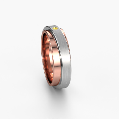 Een bijzondere bijzondere huwelijksring! Uniek, net als jullie relatie uniek is! Iedereen is anders en daarom wil je ook geen standaard huwelijksring. Deze fantasie WH2220L16D dames huwelijksring is door onze juwelen ontwerpers ontworpen en wordt door onze goudsmid met de hand vervaardigd. Daarbij worden het oude, pure ambacht gecombineerd met de modernste technieken om het mooiste resultaat te creëren. Want onze goudsmid gaat voor perfectie in alle facetten. Een unieke, handgemaakte huwelijksring, gemaakt om jullie liefde te bezegelen op de grote dag! In deze fantasie WH2220L16D huwelijksring van rosé goud is gele saffier geplaatst, hij is ±6 mm breed en heeft een mat/glimmende afwerking.