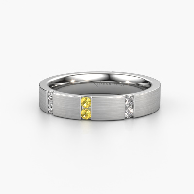 Deze moderne dames trouwring is een prachtige, moderne trouwring, die jullie unieke liefde voor elkaar symboliseert! Perfect passend bij de man met een hedendaagse stijl. En deze kunnen jullie helemaal samenstellen naar jullie eigen wensen en ideeën. Onze goudsmid ziet in iedere trouwring een mooie uitdaging en gaat met jullie ontwerp in ons atelier graag aan de slag. Met veel zorg en passie vervaardigt hij jullie trouwring WH2133L14BM met de hand en maakt daarbij gebruik van zowel de meest innovatieve technieken als het pure vakmanschap. Met deze unieke, moderne trouwring als resultaat! In deze moderne WH2133L14BM trouwring is ronde gele saffier geplaatst, hij is ±4 mm breed en heeft een mat/glimmende afwerking. Je kunt in de configurator hierboven aangeven welke combinatie van edelmetalen bij jou passen, alles is mogelijk! Het is wel goed om te kijken naar de eigenschappen van de edelmetalen. Goud en zilver zijn bijvoorbeeld twee zachtere edelmetalen. Hoe puurder deze door onze goudsmid worden samengesteld, hoe hoger het aantal karaat, hoe zachter de trouwring is. Maar uiteraard hard genoeg voor het verwerken in een moderne trouwring! Wanneer je een edelmetaal zou willen, die je leven lang mee zal gaan, dan raden wij platina aan. Dit is het sterkste en meest duurzame edelmetaal waar onze goudsmid mee werkt.Heb je nog meer wensen voor je trouwring en kun je deze hier niet terug vinden? Neem gerust contact op met onze designers! Zo kunnen we een ring juist mat maken, breder of smaller. Ook gravures zijn in de meeste gevallen mogelijk. En heb je een eigen idee voor mooie trouwringen? Onze sieradenontwerpers vinden het een prachtige uitdaging om jouw ring helemaal naar jouw voorstelling te ontwerpen!Omdat wij zelf alle trouwringen maken en direct aan jou leveren kunnen wij je trouwringen leveren tegen een prijs die je nergens anders zult tegenkomen. Een ring wordt pas gemaakt als we een bestelling krijgen, hierdoor hebben wij geen dure voorraden en kunnen wij jou de beste prijs garanderen.Om het voor jou makkelijker te maken kun je ieder besteld sieraad binnen 30 dagen na aflevering eenvoudig weer retour sturen.