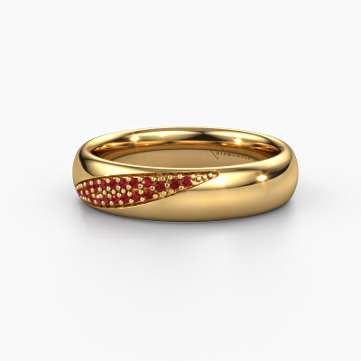 Wanneer je echt op zoek bent naar een gouden exclusieve, exclusieve trouwring met een prachtige uitstraling, dan is deze trouwring een absoluut mooie keuze. Juist doordat deze naar jouw stijl aangepast kan worden, kun je van deze trouwring een unieke, exclusieve trouwring maken. In deze exclusieve trouwring voor dames smelten ambachtelijk vakmanschap, liefde en passie samen met de modernste technieken. In deze exclusieve WH2025L trouwring is robijn 1 mm geplaatst, hij is ±5 mm breed en heeft een glimmende afwerking. Een trouwring uitzoeken is niet iets dat je even snel wilt doen. Uiteindelijk willen jullie die ring dragen, die precies bij jullie stijl en wensen past. En die ook jullie liefde en relatie met elkaar weerspiegelt. Een ring, die bedoeld is om een leven lang te dragen, en symbool staat voor alles wat jullie verbindt. Daarom vinden wij het zo mooi, dat we precies de ring die jullie in gedachten hebben, kunnen vervaardigen. Dit gaat allemaal ambachtelijk met de hand in ons eigen atelier, zodat we ieder detail heel precies kunnen verwerken. Een mooier vak bestaat niet!Je kunt je trouwens ook laten inspireren door deze trouwring en de ring nog verder naar smaak aanpassen. Wil je bijvoorbeeld liever een bredere of smallere ring of een glimmende of matte ring? Alles is mogelijk. Ook als je zelf een idee hebt voor prachtige trouwringen, of ergens anders een mooie set hebt gezien, die je naar eigen wens zou willen aanpassen: geen probleem! Neem gerust contact op, onze designers bespreken graag de mogelijkheden met je!Trouwringen worden pas vervaardigd als deze besteld worden. Het grote voordeel hiervan is dat wij geen dure voorraden hebben, en dat zie je terug in de prijs. Ook worden alle trouwringen in ons eigen atelier gemaakt door onze eigen goudsmeden, en kunnen we je hierdoor een beste prijsgarantie geven, voor een ring in vertrouwde juwelierskwaliteit.Om het voor jou makkelijker te maken kun je ieder besteld sieraad binnen 30 dagen na aflevering eenvoudig weer retour sturen.