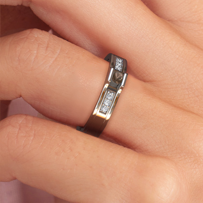 Een unieke bicolor platina dames trouwring, door jullie zelf ontworpen en ambachtelijk met de hand gemaakt door onze goudsmid in ons eigen atelier! Een prachtig symbool, dat jullie liefde weerspiegelt en je je leven lang mee mag dragen! Elke trouwring die wij leveren is in ons eigen atelier ambachtelijk met de hand gemaakt. Hierdoor is het mogelijk om al je wensen te verwezenlijken in jouw persoonlijke ring, die bij jouw stijl past. In deze moderne WH2110L14A trouwring is ronde rookkwarts geplaatst, hij is ±4 mm breed en heeft een glimmende afwerking. In ons gespecialiseerde team verwerkt de sieradenontwerper jouw trouwring tot een 3D ontwerp. Wanneer je wilt, kun je hier ook een dummy van bestellen, zodat je de trouwring al van tevoren kunt zien en passen. Onze goudsmid werkt vervolgens in ons atelier met de hand om heel nauwkeurig jouw unieke ring te vervaardigen. Een heel secuur werkje, zowel het vervaardigen als de afwerking vragen een scherp oog. En dat is het mooie van het vak, want uiteindelijk is jouw unieke trouwring het resultaat van een echt ambacht, dat met veel passie uitgevoerd wordt!Heb je nog specifieke wensen? Bijvoorbeeld een glimmende of juiste matte ring (kostenloos)? Breder of smaller? De mogelijkheden voor deze trouwring groot, neem gerust contact met onze designers op om jouw ring nog verder naar jouw voorkeuren aan te passen. Ook als je ideeën hebt voor een ontwerp van je eigen trouwringen of een bepaalde ring in de winkel hebt gezien, kun je deze altijd bespreken met onze sieradenontwerpers. Zij vinden het een mooie uitdaging om precies die ring te ontwerpen die jij in gedachten hebt!Door de modernste technieken, gecombineerd met ambachtelijk handwerk, kunnen wij je trouwringen leveren voor een prijs die altijd 30% goedkoper is. Ook doordat we alle trouwringen zelf gaan maken, zodra een bestelling komt, hebben we geen dure voorraden en kunnen we daardoor jou de beste prijsgarantie geven, voor juwelierskwaliteit!Om het voor jou makkelijker te maken kun je ieder besteld sieraad binnen 30 dagen na aflevering eenvoudig weer retour sturen.