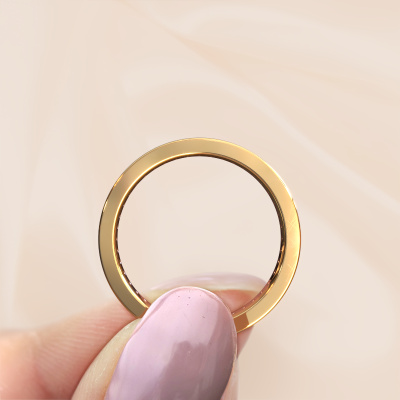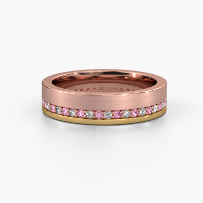 Wist je dat de Eternity trouwring ook niet alleen van uitstraling, maar ook symbolisch een prachtige trouwring is? De Eternity trouwring, met de naast elkaar geplaatste diamantjes, staat voor jullie eeuwigdurende liefde. Doordat de steentjes geheel rondom zijn geplaatst, is er geen begin en geen eind. Prachtig toch? De breedte van deze speciale rosé gouden WH0303L15BPM dames trouwring is ±5 mm breed en hij is gezet met roze saffier 1.3 mm. In ons gespecialiseerde team verwerkt de sieradenontwerper jouw trouwring tot een 3D ontwerp. Wanneer je wilt, kun je hier ook een dummy van bestellen, zodat je de trouwring al van tevoren kunt zien en passen. Onze goudsmid werkt vervolgens in ons atelier met de hand om heel nauwkeurig jouw unieke ring te vervaardigen. Een heel secuur werkje, zowel het vervaardigen als de afwerking vragen een scherp oog. En dat is het mooie van het vak, want uiteindelijk is jouw unieke trouwring het resultaat van een echt ambacht, dat met veel passie uitgevoerd wordt!Deze trouwring kan ook als inspiratiebron dienen. Wil jij de ring mat of glimmend (kosteloos), of zou je hem breder of smaller willen? Alles is mogelijk. Omdat er talloze variaties mogelijk zijn kunnen wij niet alles tonen op onze website. Heb je zelf een idee voor mooie trouwringen of heb je ergens anders een mooie trouwringen set gezien? Neem dan eens contact met ons op, onze designers staan voor je klaar om je hierbij te helpen.Omdat wij zelf alle trouwringen maken en direct aan u leveren kunnen wij u trouwringen leveren tegen een prijs die u nergens anders zult tegenkomen. Een ring wordt pas gemaakt als we een bestelling krijgen, hierdoor hebben wij geen dure voorraden en kunnen wij u de beste prijs garanderen.Om het voor jou makkelijker te maken kun je ieder besteld sieraad binnen 30 dagen na aflevering eenvoudig weer retour sturen.