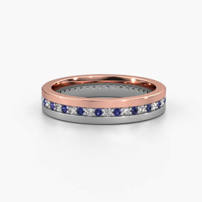 Wist je dat de Eternity trouwring ook niet alleen van uitstraling, maar ook symbolisch een prachtige trouwring is? De Eternity trouwring, met de naast elkaar geplaatste diamantjes, staat voor jullie eeuwigdurende liefde. Doordat de steentjes geheel rondom zijn geplaatst, is er geen begin en geen eind. Prachtig toch? De breedte van deze royale rosé gouden WH0203L14BPM dames trouwring is ±4 mm breed en hij is gezet met saffier 1.3 mm. Een trouwring uitzoeken is niet iets dat je even snel wilt doen. Uiteindelijk willen jullie die ring dragen, die precies bij jullie stijl en wensen past. En die ook jullie liefde en relatie met elkaar weerspiegelt. Een ring, die bedoeld is om een leven lang te dragen, en symbool staat voor alles wat jullie verbindt. Daarom vinden wij het zo mooi, dat we precies de ring die jullie in gedachten hebben, kunnen vervaardigen. Dit gaat allemaal ambachtelijk met de hand in ons eigen atelier, zodat we ieder detail heel precies kunnen verwerken. Een mooier vak bestaat niet!Heb je nog specifieke wensen? Bijvoorbeeld een glimmende of juiste matte ring (kostenloos)? Breder of smaller? De mogelijkheden voor deze trouwring groot, neem gerust contact met onze designers op om jouw ring nog verder naar jouw voorkeuren aan te passen. Ook als je ideeën hebt voor een ontwerp van je eigen trouwringen of een bepaalde ring in de winkel hebt gezien, kun je deze altijd bespreken met onze sieradenontwerpers. Zij vinden het een mooie uitdaging om precies die ring te ontwerpen die jij in gedachten hebt!Trouwringen worden pas vervaardigd als deze besteld worden. Het grote voordeel hiervan is dat wij geen dure voorraden hebben, en dat zie je terug in de prijs. Ook worden alle trouwringen in ons eigen atelier gemaakt door onze eigen goudsmeden, en kunnen we je hierdoor een beste prijsgarantie geven, voor een ring in vertrouwde juwelierskwaliteit.Om het voor jou makkelijker te maken kun je ieder besteld sieraad binnen 30 dagen na aflevering eenvoudig weer retour sturen.