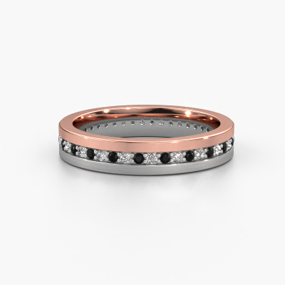 Wist je dat de Eternity trouwring ook niet alleen van uitstraling, maar ook symbolisch een prachtige trouwring is? De Eternity trouwring, met de naast elkaar geplaatste diamantjes, staat voor jullie eeuwigdurende liefde. Doordat de steentjes geheel rondom zijn geplaatst, is er geen begin en geen eind. Prachtig toch? De breedte van deze royale rosé gouden WH0203L14BPM dames trouwring is ±4 mm breed en hij is gezet met zwarte diamant 0.484 crt. Een trouwring uitzoeken is niet iets dat je even snel wilt doen. Uiteindelijk willen jullie die ring dragen, die precies bij jullie stijl en wensen past. En die ook jullie liefde en relatie met elkaar weerspiegelt. Een ring, die bedoeld is om een leven lang te dragen, en symbool staat voor alles wat jullie verbindt. Daarom vinden wij het zo mooi, dat we precies de ring die jullie in gedachten hebben, kunnen vervaardigen. Dit gaat allemaal ambachtelijk met de hand in ons eigen atelier, zodat we ieder detail heel precies kunnen verwerken. Een mooier vak bestaat niet!Heb je nog specifieke wensen? Bijvoorbeeld een glimmende of juiste matte ring (kostenloos)? Breder of smaller? De mogelijkheden voor deze trouwring groot, neem gerust contact met onze designers op om jouw ring nog verder naar jouw voorkeuren aan te passen. Ook als je ideeën hebt voor een ontwerp van je eigen trouwringen of een bepaalde ring in de winkel hebt gezien, kun je deze altijd bespreken met onze sieradenontwerpers. Zij vinden het een mooie uitdaging om precies die ring te ontwerpen die jij in gedachten hebt!Trouwringen worden pas vervaardigd als deze besteld worden. Het grote voordeel hiervan is dat wij geen dure voorraden hebben, en dat zie je terug in de prijs. Ook worden alle trouwringen in ons eigen atelier gemaakt door onze eigen goudsmeden, en kunnen we je hierdoor een beste prijsgarantie geven, voor een ring in vertrouwde juwelierskwaliteit.Om het voor jou makkelijker te maken kun je ieder besteld sieraad binnen 30 dagen na aflevering eenvoudig weer retour sturen.