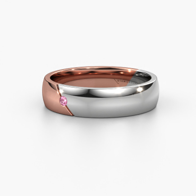 Een unieke bicolor rosé gouden dames trouwring, door jullie zelf ontworpen en ambachtelijk met de hand gemaakt door onze goudsmid in ons eigen atelier! Een prachtig symbool, dat jullie liefde weerspiegelt en je je leven lang mee mag dragen! Elke trouwring die wij leveren is in ons eigen atelier ambachtelijk met de hand gemaakt. Hierdoor is het mogelijk om al je wensen te verwezenlijken in jouw persoonlijke ring, die bij jouw stijl past. In deze moderne WH1201L25AP trouwring is ronde roze saffier geplaatst, hij is ±5 mm breed en heeft een glimmende afwerking. Nadat jij jouw ring hebt samengesteld, gaat onze sieradenontwerper hiermee aan de slag. Hij maakt een 3D tekening van jouw trouwring. Deze kunnen we ook gebruiken om een dummy te maken van je ring. Je hebt namelijk de mogelijkheid een dummy te bestellen, zodat je al van tevoren kunt zien hoe jouw ring uiteindelijk wordt. Vervolgens vervaardigt onze vakkundige goudsmid jouw ring in ons atelier. Wij maken gebruik van eerlijk gewonnen goud, zodat jij een ring krijgt waar we zowel op de binnenkant als buitenkant trots op zijn. Overigens kun je ook eigen goud aanleveren. Omdat wij jouw ring met de hand maken, kunnen we je eigen goud hierin gebruiken. Ons doel is om een prachtige glanzende trouwring te creëren, zoals jij deze in gedachte had!Heb je nog specifieke wensen? Bijvoorbeeld een glimmende of juiste matte ring (kostenloos)? Breder of smaller? De mogelijkheden voor deze trouwring groot, neem gerust contact met onze designers op om jouw ring nog verder naar jouw voorkeuren aan te passen. Ook als je ideeën hebt voor een ontwerp van je eigen trouwringen of een bepaalde ring in de winkel hebt gezien, kun je deze altijd bespreken met onze sieradenontwerpers. Zij vinden het een mooie uitdaging om precies die ring te ontwerpen die jij in gedachten hebt!Trouwringen worden pas vervaardigd als deze besteld worden. Het grote voordeel hiervan is dat wij geen dure voorraden hebben, en dat zie je terug in de prijs. Ook worden alle trouwringen in ons eigen atelier gemaakt door onze eigen goudsmeden, en kunnen we je hierdoor een beste prijsgarantie geven, voor een ring in vertrouwde juwelierskwaliteit.Om het voor jou makkelijker te maken kun je ieder besteld sieraad binnen 30 dagen na aflevering eenvoudig weer retour sturen.