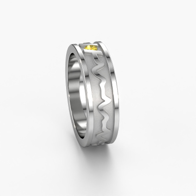 Een unieke trouwring! Het bijzondere van deze trouwring is dat je de hartslag van jouw geliefde kunt laten graveren en daarmee symbolisch kunt laten zien wie jouw hart sneller laat kloppen. Een prachtige gravure op een unieke trouwring. Je kunt deze voor een deel op de trouwring laten graveren of helemaal rondom, de keuze is aan jou! Hoe het werkt, lees je in onze kennisbank, onderaan deze pagina. Deze unieke trouwring van witgoud met de naam Heartbeat 3 is voor dames en is ±6 mm breed. Met behulp van onze configurator kun je de trouwring in verschillende edelmetalen en kleuren samenstellen. Onze sieradenontwerpers zetten je ontwerp vervolgens om in een 3D ontwerp, zodat je precies kunt zien hoe je sieraad eruit komt te zien. Onze goudsmeden vervaardigen daarna je trouwring met de hand, volgens de oude ambachten. Het is namelijk onze uitdaging om precies die trouwring te vervaardigen die jij in gedachten hebt. Een unieke trouwring die helemaal bij jullie stijl past!Heb je nog meer wensen voor je trouwring? Bijvoorbeeld een smallere of breder ring? Of juist een glimmende of matte ring? Er zijn nog talloze variaties mogelijk. Deze kun je altijd bespreken met onze sieradenontwerpers. Ook als je zelf een bepaald design in je hoofd hebt, helpen onze designers je graag verder om jouw trouwringen uit te tekenen totdat deze helemaal naar jouw smaak is samengesteld. Neem gerust contact met ons op!Doordat wij alle trouwringen pas vervaardigen, zodra een bestelling geplaatst wordt, hebben wij geen dure voorraden. Ook worden alle sieraden in eigen atelier naar ambachtelijk vakmanschap gemaakt. Hierdoor kunnen we jou een beste prijsgarantie leveren, de prijs ligt 30% lager dan bij andere juweliers. En dat terwijl jouw trouwringen geleverd worden in de vertrouwde juwelierskwaliteit!Om het voor jou makkelijker te maken kun je ieder besteld sieraad binnen 30 dagen na aflevering eenvoudig weer retour sturen.