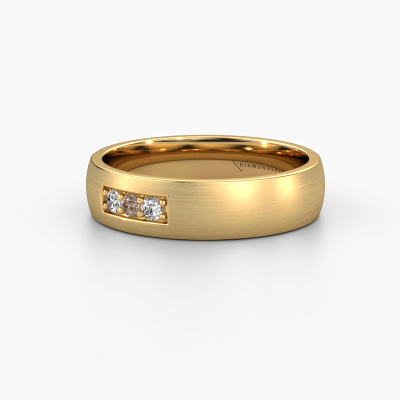 In ons atelier maken we gebruik van de meest innovatieve technieken, gecombineerd met het pure ambacht van goudsmeden, om jouw dames trouwring te vervaardigen. Dit resulteert in deze moderne WH0110L25AM trouwring, die tot in de kleinste details perfect wordt afgewerkt met de hand door onze goudsmeden. En daar zijn we trots op! Deze gouden WH0110L25AM trouwring met vlak-bol profiel voor dames is ±5 mm breed en is mat/glimmende afgewerkt met bruine diamant. Je kunt in de configurator hierboven aangeven welke combinatie van edelmetalen bij jou passen, alles is mogelijk! Het is wel goed om te kijken naar de eigenschappen van de edelmetalen. Goud en zilver zijn bijvoorbeeld twee zachtere edelmetalen. Hoe puurder deze door onze goudsmid worden samengesteld, hoe hoger het aantal karaat, hoe zachter de trouwring is. Maar uiteraard hard genoeg voor het verwerken in een moderne trouwring! Wanneer je een edelmetaal zou willen, die je leven lang mee zal gaan, dan raden wij platina aan. Dit is het sterkste en meest duurzame edelmetaal waar onze goudsmid mee werkt.Heb je nog specifieke wensen? Bijvoorbeeld een glimmende of juiste matte ring (kostenloos)? Breder of smaller? De mogelijkheden voor deze trouwring groot, neem gerust contact met onze designers op om jouw ring nog verder naar jouw voorkeuren aan te passen. Ook als je ideeën hebt voor een ontwerp van je eigen trouwringen of een bepaalde ring in de winkel hebt gezien, kun je deze altijd bespreken met onze sieradenontwerpers. Zij vinden het een mooie uitdaging om precies die ring te ontwerpen die jij in gedachten hebt!Alle trouwringen worden in ons eigen atelier gemaakt, zodra een bestelling binnenkomt. Hierdoor hoeven wij geen dure voorraden te hebben en kunnen wij je trouwringen leveren tegen een prijs die je bij geen andere juwelier tegen zult komen.Om het voor jou makkelijker te maken kun je ieder besteld sieraad binnen 30 dagen na aflevering eenvoudig weer retour sturen.