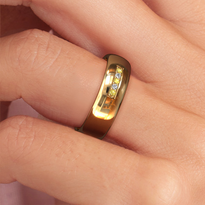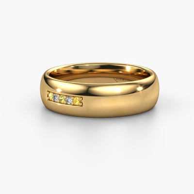 In ons atelier maken we gebruik van de meest innovatieve technieken, gecombineerd met het pure ambacht van goudsmeden, om jouw dames trouwring te vervaardigen. Dit resulteert in deze klassieke WH0111L36BP trouwring, die tot in de kleinste details perfect wordt afgewerkt met de hand door onze goudsmeden. En daar zijn we trots op! Deze gouden WH0111L36BP trouwring met vlak-bol profiel voor dames is ±6 mm breed en is glimmende afgewerkt met gele saffier. In ons gespecialiseerde team verwerkt de sieradenontwerper jouw trouwring tot een 3D ontwerp. Wanneer je wilt, kun je hier ook een dummy van bestellen, zodat je de trouwring al van tevoren kunt zien en passen. Onze goudsmid werkt vervolgens in ons atelier met de hand om heel nauwkeurig jouw unieke ring te vervaardigen. Een heel secuur werkje, zowel het vervaardigen als de afwerking vragen een scherp oog. En dat is het mooie van het vak, want uiteindelijk is jouw unieke trouwring het resultaat van een echt ambacht, dat met veel passie uitgevoerd wordt!Deze trouwring kan ook als inspiratiebron dienen. Wil jij de ring mat of glimmend (kosteloos), of zou je hem breder of smaller willen? Alles is mogelijk. Omdat er talloze variaties mogelijk zijn kunnen wij niet alles tonen op onze website. Heb je zelf een idee voor mooie trouwringen of heb je ergens anders een mooie trouwringen set gezien? Neem dan eens contact met ons op, onze designers staan voor je klaar om je hierbij te helpen.Doordat wij alle trouwringen pas vervaardigen, zodra een bestelling geplaatst wordt, hebben wij geen dure voorraden. Ook worden alle sieraden in eigen atelier naar ambachtelijk vakmanschap gemaakt. Hierdoor kunnen we jou een beste prijsgarantie leveren, de prijs ligt 30% lager dan bij andere juweliers. En dat terwijl jouw trouwringen geleverd worden in de vertrouwde juwelierskwaliteit!Om het voor jou makkelijker te maken kun je ieder besteld sieraad binnen 30 dagen na aflevering eenvoudig weer retour sturen.