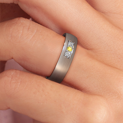 In ons atelier maken we gebruik van de meest innovatieve technieken, gecombineerd met het pure ambacht van goudsmeden, om jouw dames trouwring te vervaardigen. Dit resulteert in deze moderne WH0110L25AM trouwring, die tot in de kleinste details perfect wordt afgewerkt met de hand door onze goudsmeden. En daar zijn we trots op! Deze witgouden WH0110L25AM trouwring met vlak-bol profiel voor dames is ±5 mm breed en is mat/glimmende afgewerkt met gele saffier. Je kunt in de configurator hierboven aangeven welke combinatie van edelmetalen bij jou passen, alles is mogelijk! Het is wel goed om te kijken naar de eigenschappen van de edelmetalen. Goud en zilver zijn bijvoorbeeld twee zachtere edelmetalen. Hoe puurder deze door onze goudsmid worden samengesteld, hoe hoger het aantal karaat, hoe zachter de trouwring is. Maar uiteraard hard genoeg voor het verwerken in een moderne trouwring! Wanneer je een edelmetaal zou willen, die je leven lang mee zal gaan, dan raden wij platina aan. Dit is het sterkste en meest duurzame edelmetaal waar onze goudsmid mee werkt.Heb je nog specifieke wensen? Bijvoorbeeld een glimmende of juiste matte ring (kostenloos)? Breder of smaller? De mogelijkheden voor deze trouwring groot, neem gerust contact met onze designers op om jouw ring nog verder naar jouw voorkeuren aan te passen. Ook als je ideeën hebt voor een ontwerp van je eigen trouwringen of een bepaalde ring in de winkel hebt gezien, kun je deze altijd bespreken met onze sieradenontwerpers. Zij vinden het een mooie uitdaging om precies die ring te ontwerpen die jij in gedachten hebt!Alle trouwringen worden in ons eigen atelier gemaakt, zodra een bestelling binnenkomt. Hierdoor hoeven wij geen dure voorraden te hebben en kunnen wij je trouwringen leveren tegen een prijs die je bij geen andere juwelier tegen zult komen.Om het voor jou makkelijker te maken kun je ieder besteld sieraad binnen 30 dagen na aflevering eenvoudig weer retour sturen.