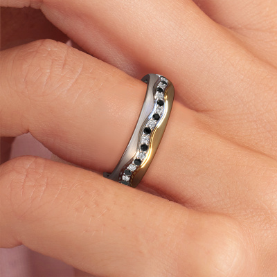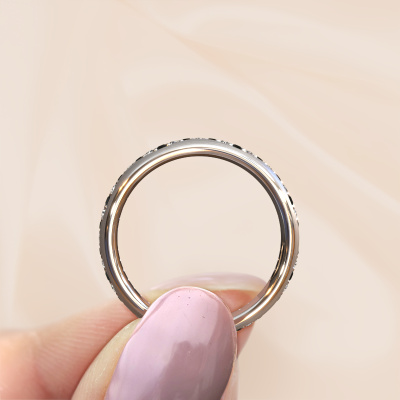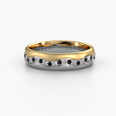 Een bijzondere eternity trouwring! Uniek, net als jullie relatie uniek is! Iedereen is anders en daarom wil je ook geen standaard trouwring. Deze moderne WH0803L35BM dames trouwring is door onze juwelen ontwerpers ontworpen en wordt door onze goudsmid met de hand vervaardigd. Daarbij worden het oude, pure ambacht gecombineerd met de modernste technieken om het mooiste resultaat te creëren. Want onze goudsmid gaat voor perfectie in alle facetten. Een unieke, handgemaakte trouwring, gemaakt om jullie liefde te bezegelen op de grote dag! In deze moderne WH0803L35BM trouwring van goud is zwarte diamant geplaatst, hij is ±5 mm breed en heeft een glimmende afwerking. Je kunt in de configurator hierboven aangeven welke combinatie van edelmetalen bij jou passen, alles is mogelijk! Het is wel goed om te kijken naar de eigenschappen van de edelmetalen. Goud en zilver zijn bijvoorbeeld twee zachtere edelmetalen. Hoe puurder deze door onze goudsmid worden samengesteld, hoe hoger het aantal karaat, hoe zachter de trouwring is. Maar uiteraard hard genoeg voor het verwerken in een moderne trouwring! Wanneer je een edelmetaal zou willen, die je leven lang mee zal gaan, dan raden wij platina aan. Dit is het sterkste en meest duurzame edelmetaal waar onze goudsmid mee werkt.Deze trouwring kan ook als inspiratiebron dienen. Wil jij de ring mat of glimmend (kosteloos), of zou je hem breder of smaller willen? Alles is mogelijk. Omdat er talloze variaties mogelijk zijn kunnen wij niet alles tonen op onze website. Heb je zelf een idee voor mooie trouwringen of heb je ergens anders een mooie trouwringen set gezien? Neem dan eens contact met ons op, onze designers staan voor je klaar om je hierbij te helpen.Doordat wij alle trouwringen pas vervaardigen, zodra een bestelling geplaatst wordt, hebben wij geen dure voorraden. Ook worden alle sieraden in eigen atelier naar ambachtelijk vakmanschap gemaakt. Hierdoor kunnen we jou een beste prijsgarantie leveren, de prijs ligt 30% lager dan bij andere juweliers. En dat terwijl jouw trouwringen geleverd worden in de vertrouwde juwelierskwaliteit!Om het voor jou makkelijker te maken kun je ieder besteld sieraad binnen 30 dagen na aflevering eenvoudig weer retour sturen.