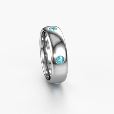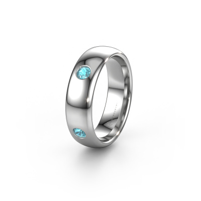 Wist je dat de Eternity trouwring ook niet alleen van uitstraling, maar ook symbolisch een prachtige trouwring is? De Eternity trouwring, met de naast elkaar geplaatste diamantjes, staat voor jullie eeuwigdurende liefde. Doordat de steentjes geheel rondom zijn geplaatst, is er geen begin en geen eind. Prachtig toch? De breedte van deze brede witgouden WH0104L36BP dames trouwring is ±6 mm breed en hij is gezet met blauw topaas 3 mm. Goud is hét symbool van de liefde, en daarom verwerkt onze goudsmid dit graag in een moderne trouwring voor jou. Wij zijn aangesloten bij de Responsible Jewellery Council. Dit betekent dat wij werken met eerlijk gewonnen goud, iets waar we uiteraard trots op zijn. Het is trouwens ook mogelijk om je eigen goud te laten verwerken in jouw trouwring. Doordat alle sieraden door onze goudsmid met de hand in ons atelier wordt gemaakt, kunnen wij jou deze optie aanbieden. Hierdoor heb jij de gelegenheid om jouw ring nog persoonlijker te maken, een ring met een verhaal!Laat je gerust inspireren door onze modellen. Je kunt deze trouwring ook nog verder aanpassen: breder of smaller, glimmend of juist mat? Geen probleem! Ook als je zelf ideeën hebt voor bijzondere trouwringen, staan onze sieradenontwerpers graag voor je klaar om je droomring verder uit te werken. Neem gerust met ons contact op!Doordat wij alle trouwringen pas vervaardigen, zodra een bestelling geplaatst wordt, hebben wij geen dure voorraden. Ook worden alle sieraden in eigen atelier naar ambachtelijk vakmanschap gemaakt. Hierdoor kunnen we jou een beste prijsgarantie leveren, de prijs ligt 30% lager dan bij andere juweliers. En dat terwijl jouw trouwringen geleverd worden in de vertrouwde juwelierskwaliteit!Om het voor jou makkelijker te maken kun je ieder besteld sieraad binnen 30 dagen na aflevering eenvoudig weer retour sturen.