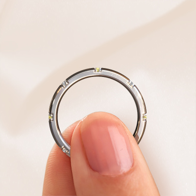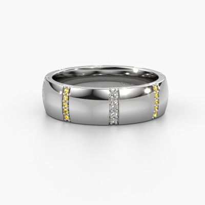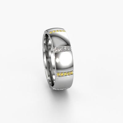 Deze moderne dames trouwring is een prachtige, moderne trouwring, die jullie unieke liefde voor elkaar symboliseert! Perfect passend bij de man met een hedendaagse stijl. En deze kunnen jullie helemaal samenstellen naar jullie eigen wensen en ideeën. Onze goudsmid ziet in iedere trouwring een mooie uitdaging en gaat met jullie ontwerp in ons atelier graag aan de slag. Met veel zorg en passie vervaardigt hij jullie trouwring WH2124L26B ±6x2 mm met de hand en maakt daarbij gebruik van zowel de meest innovatieve technieken als het pure vakmanschap. Met deze unieke, moderne trouwring als resultaat! In deze moderne WH2124L26B trouwring is ronde gele saffier geplaatst, hij is ±6 mm breed en heeft een glimmende afwerking. Met behulp van onze configurator kun je de trouwring in verschillende edelmetalen en kleuren samenstellen. Onze sieradenontwerpers zetten je ontwerp vervolgens om in een 3D ontwerp, zodat je precies kunt zien hoe je sieraad eruit komt te zien. Onze goudsmeden vervaardigen daarna je trouwring met de hand, volgens de oude ambachten. Het is namelijk onze uitdaging om precies die trouwring te vervaardigen die jij in gedachten hebt. Een unieke trouwring die helemaal bij jullie stijl past!Deze trouwring kan ook als inspiratiebron dienen. Wil jij de ring mat of glimmend (kosteloos), of zou je hem breder of smaller willen? Alles is mogelijk. Omdat er talloze variaties mogelijk zijn kunnen wij niet alles tonen op onze website. Heb je zelf een idee voor mooie trouwringen of heb je ergens anders een mooie trouwringen set gezien? Neem dan eens contact met ons op, onze designers staan voor je klaar om je hierbij te helpen.Trouwringen worden pas vervaardigd als deze besteld worden. Het grote voordeel hiervan is dat wij geen dure voorraden hebben, en dat zie je terug in de prijs. Ook worden alle trouwringen in ons eigen atelier gemaakt door onze eigen goudsmeden, en kunnen we je hierdoor een beste prijsgarantie geven, voor een ring in vertrouwde juwelierskwaliteit.Om het voor jou makkelijker te maken kun je ieder besteld sieraad binnen 30 dagen na aflevering eenvoudig weer retour sturen.