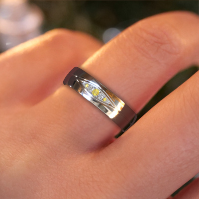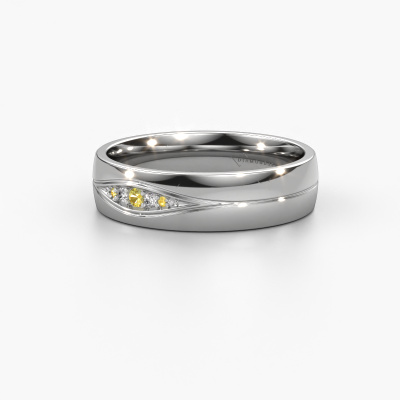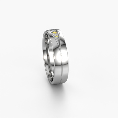 Deze moderne dames trouwring is een prachtige, moderne trouwring, die jullie unieke liefde voor elkaar symboliseert! Perfect passend bij de man met een hedendaagse stijl. En deze kunnen jullie helemaal samenstellen naar jullie eigen wensen en ideeën. Onze goudsmid ziet in iedere trouwring een mooie uitdaging en gaat met jullie ontwerp in ons atelier graag aan de slag. Met veel zorg en passie vervaardigt hij jullie trouwring WH0133L25AP ±5x1.7 mm met de hand en maakt daarbij gebruik van zowel de meest innovatieve technieken als het pure vakmanschap. Met deze unieke, moderne trouwring als resultaat! In deze moderne WH0133L25AP trouwring is ronde gele saffier geplaatst, hij is ±5 mm breed en heeft een glimmende afwerking. In ons gespecialiseerde team verwerkt de sieradenontwerper jouw trouwring tot een 3D ontwerp. Wanneer je wilt, kun je hier ook een dummy van bestellen, zodat je de trouwring al van tevoren kunt zien en passen. Onze goudsmid werkt vervolgens in ons atelier met de hand om heel nauwkeurig jouw unieke ring te vervaardigen. Een heel secuur werkje, zowel het vervaardigen als de afwerking vragen een scherp oog. En dat is het mooie van het vak, want uiteindelijk is jouw unieke trouwring het resultaat van een echt ambacht, dat met veel passie uitgevoerd wordt!Laat je gerust inspireren door onze modellen. Je kunt deze trouwring ook nog verder aanpassen: breder of smaller, glimmend of juist mat? Geen probleem! Ook als je zelf ideeën hebt voor bijzondere trouwringen, staan onze sieradenontwerpers graag voor je klaar om je droomring verder uit te werken. Neem gerust met ons contact op!Door de modernste technieken, gecombineerd met ambachtelijk handwerk, kunnen wij je trouwringen leveren voor een prijs die altijd 30% goedkoper is. Ook doordat we alle trouwringen zelf gaan maken, zodra een bestelling komt, hebben we geen dure voorraden en kunnen we daardoor jou de beste prijsgarantie geven, voor juwelierskwaliteit!Om het voor jou makkelijker te maken kun je ieder besteld sieraad binnen 30 dagen na aflevering eenvoudig weer retour sturen.
